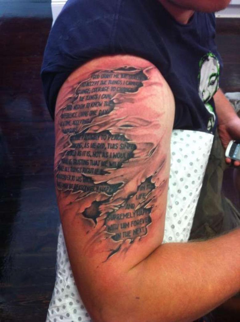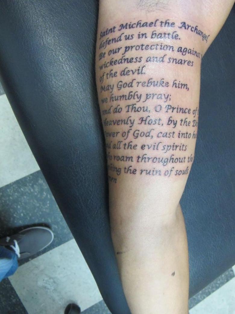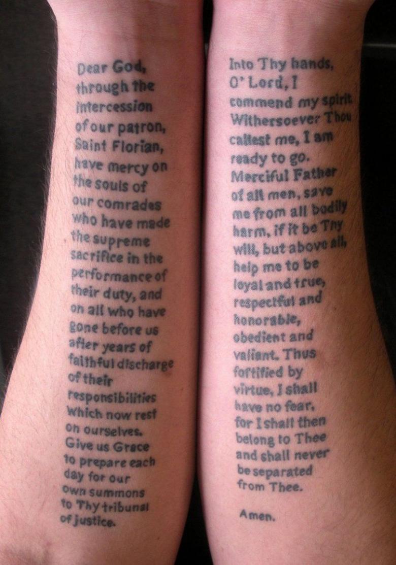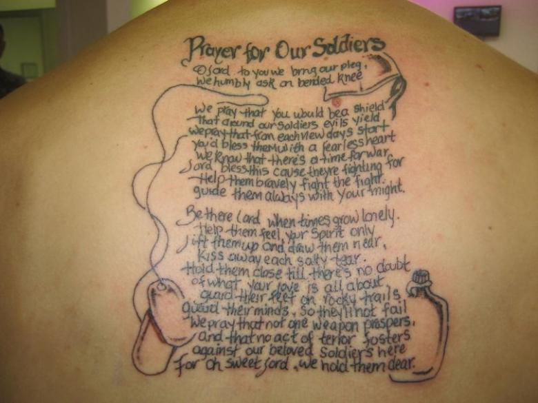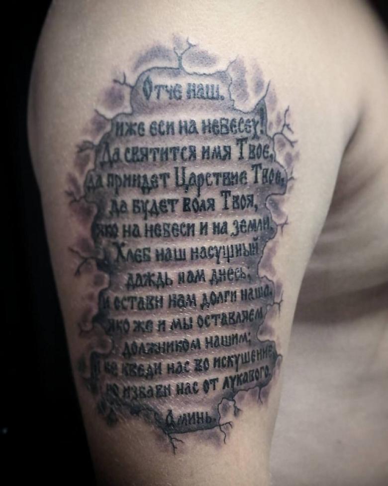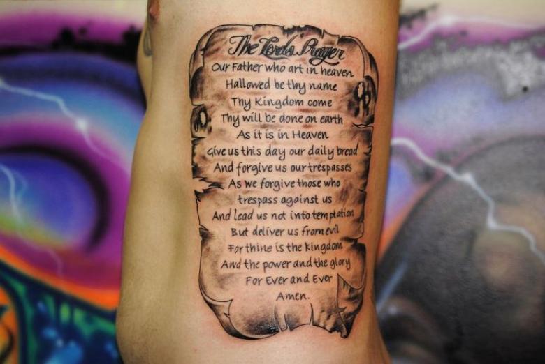 Tetovirana besedila molitev in blagoslovov, pozivi bogovom, zahvale in posvetila - vse to je mogoče utelešati v obliki tetovirane molitve na koži številnih lastnikov.