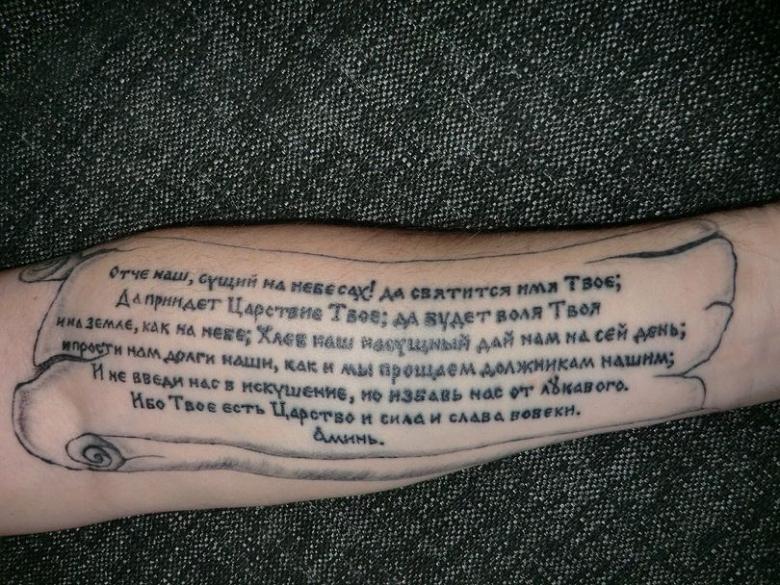 V preteklosti so zaporniki imeli različne "kupole" in molitvene tetovaže - če so imeli na hrbtu verske simbole, jih niso mogli bičati. Zdaj se lahko vsak svobodno odloči. In če se je odločil za tetovažo molitve, to pomeni, da je obstajal osebni razlog - zaobljuba, odrešitev in pomoč bogov, upanje na zaščito v hudih razmerah.