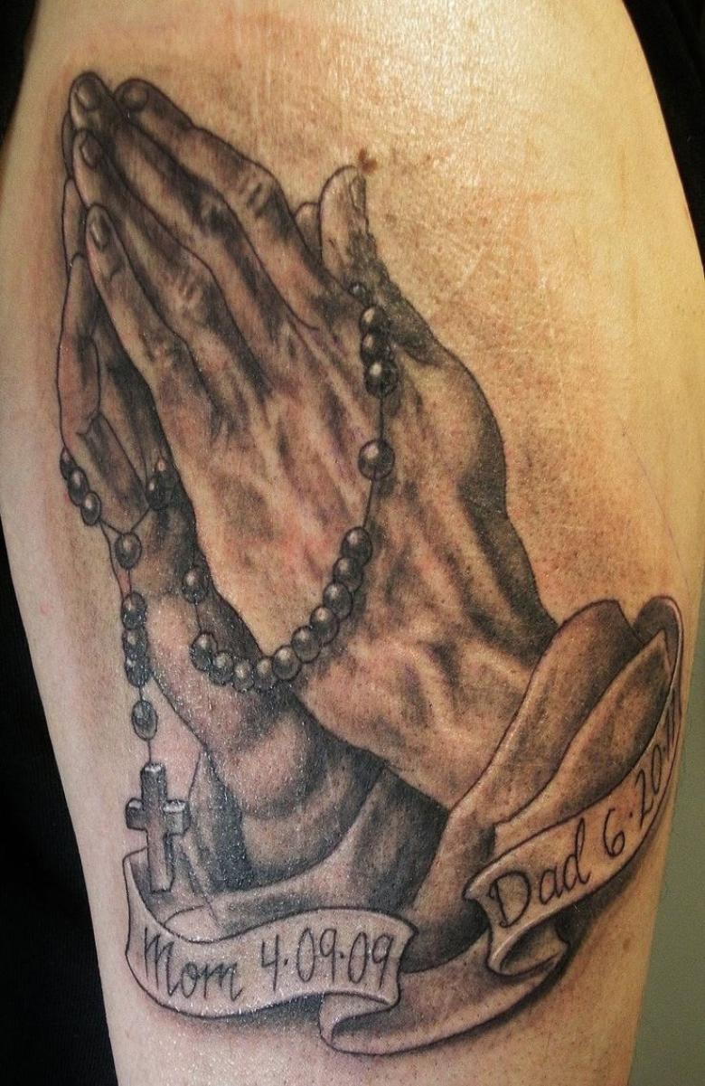 Morda najbolj priljubljena podoba v krščanstvu je slika Albrechta Dürerja s sklenjenimi rokami in križem na verigi. Spremljajo ga lahko rožni venec, golobi, druge podrobnosti in svetopisemske črte. Vendar so te različice molitvenega tatuja večinoma razširjene na Zahodu in ne v ruski pravoslavni tradiciji.