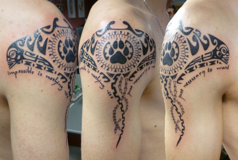 Tattoo stingray - simbolika, vzorci za moške in dekleta, polinezijski stingray tattoo, zabavne foto ideje