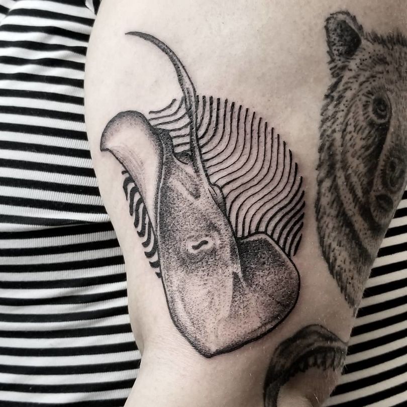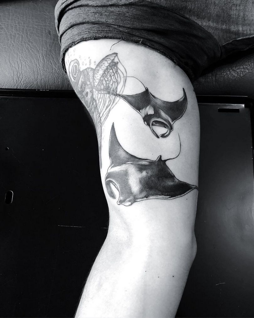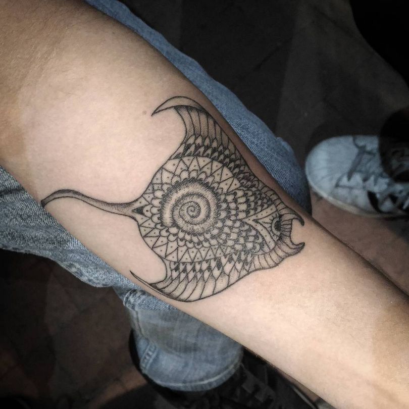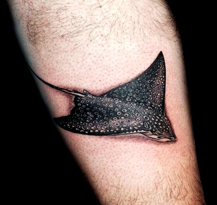 Tattoo stingray v simbolnem smislu lahko štejemo za eno najbolj nedolžnih risb. Ta elegantna podoba bo pritegnila pozornost drugih in poudarila osebnost lastnika.