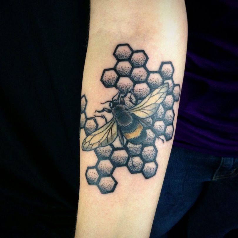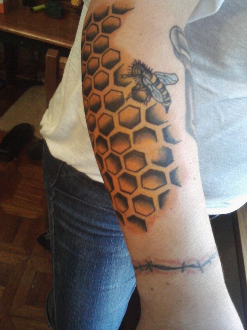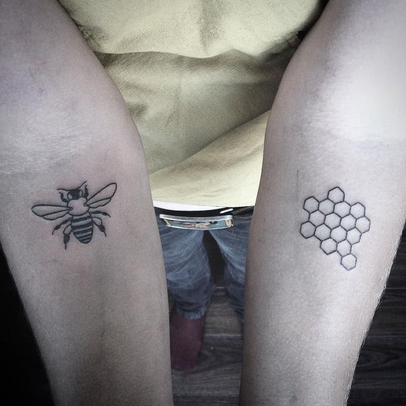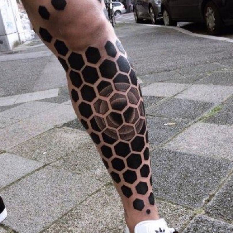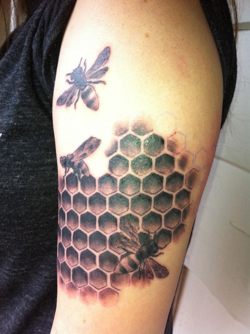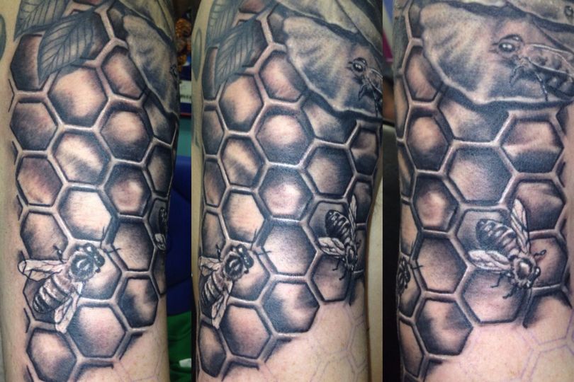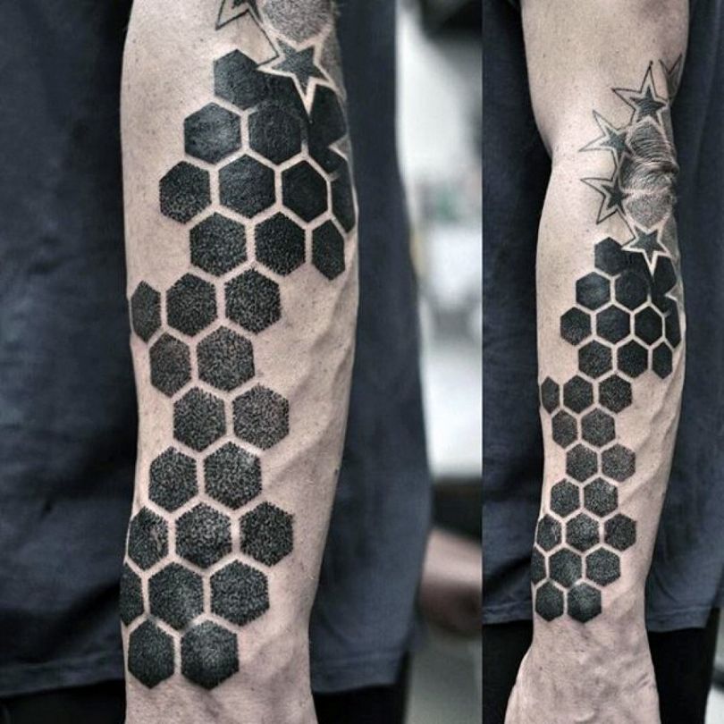 Tetovaža s satovjem: pomen za dekleta in moške, mesto uporabe (na roki, rokavu, nogi), izvirne skice in fotografske ideje