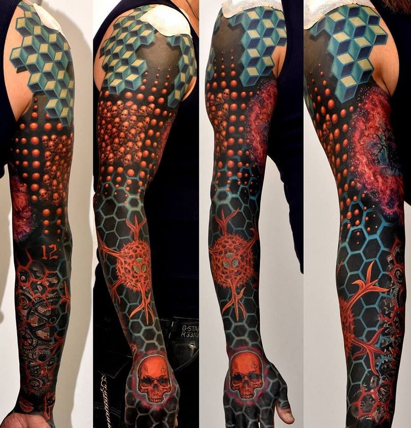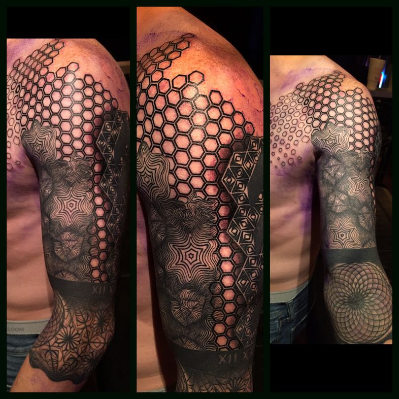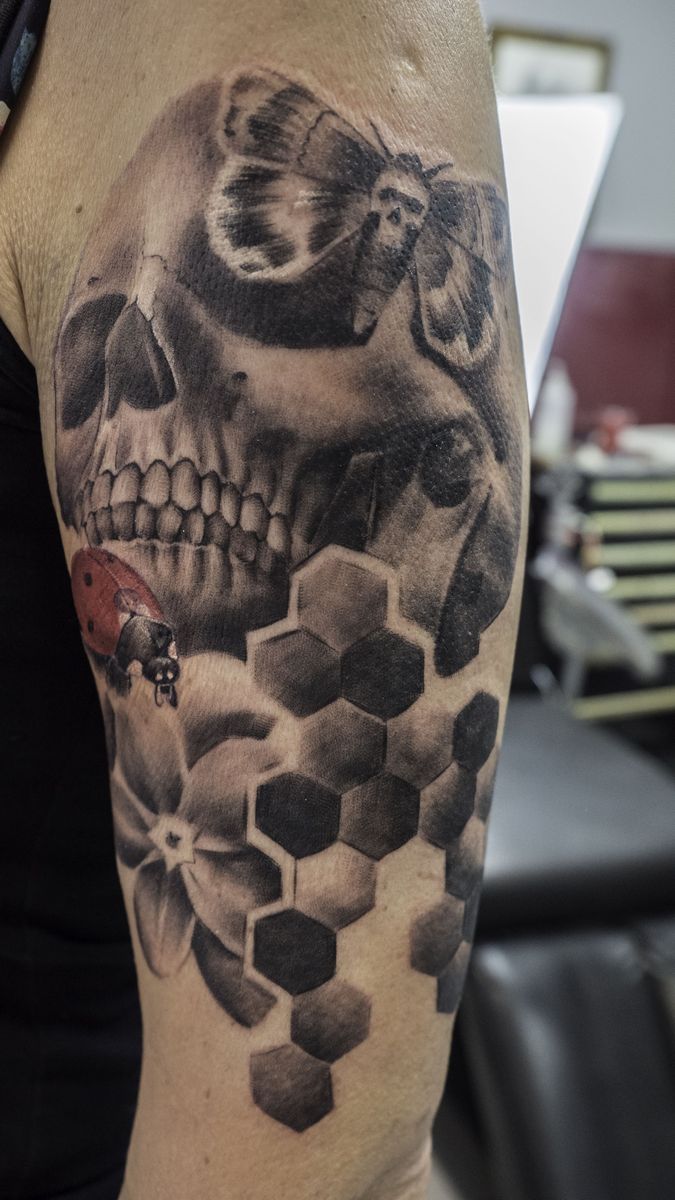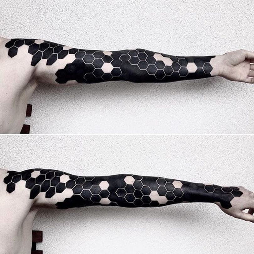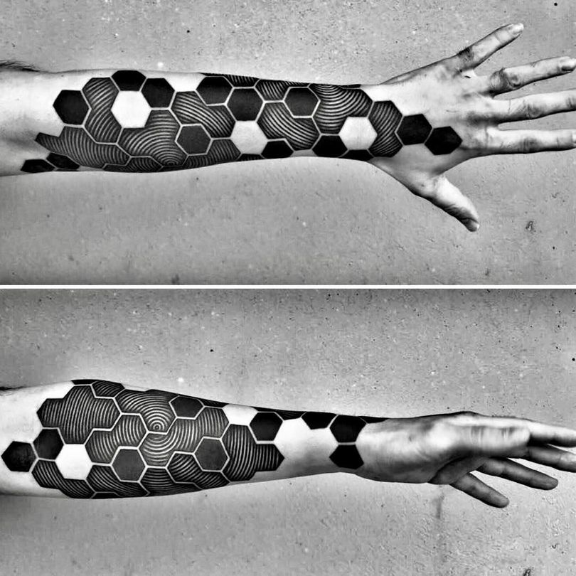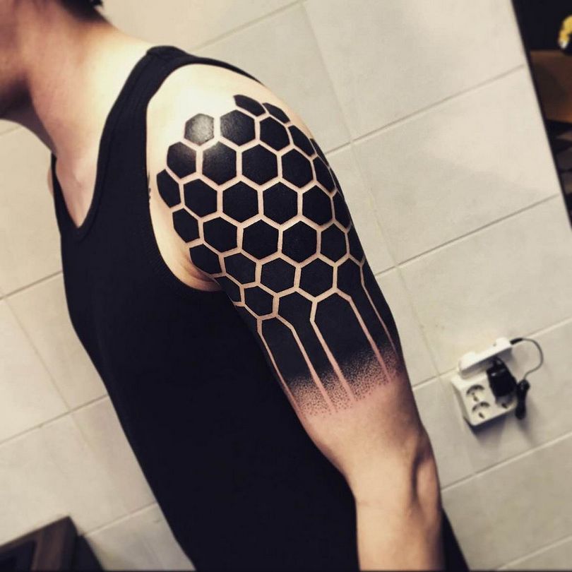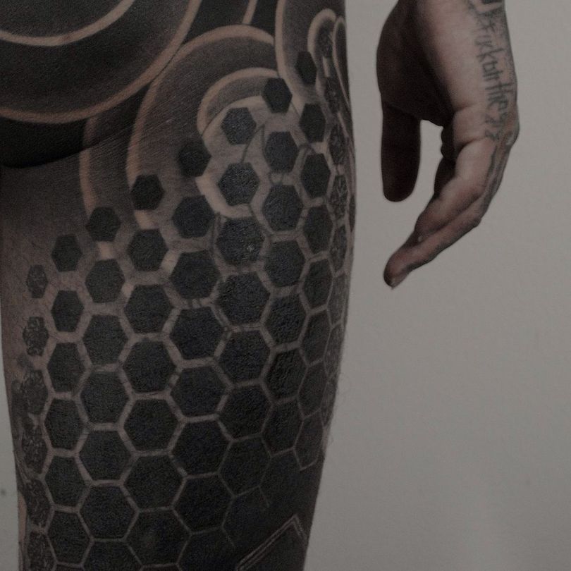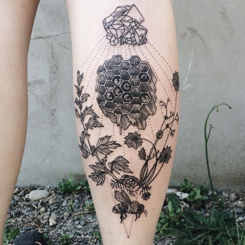 Tetovaža s satovjem: pomen za dekleta in moške, mesto uporabe (na roki, rokavu, nogi), izvirne skice in fotografske ideje