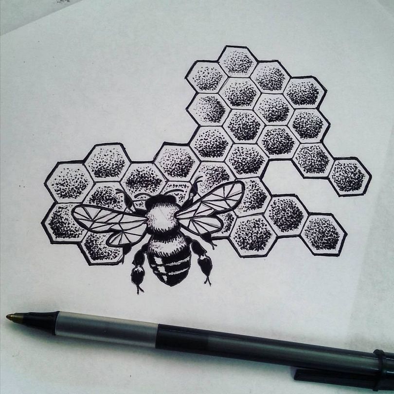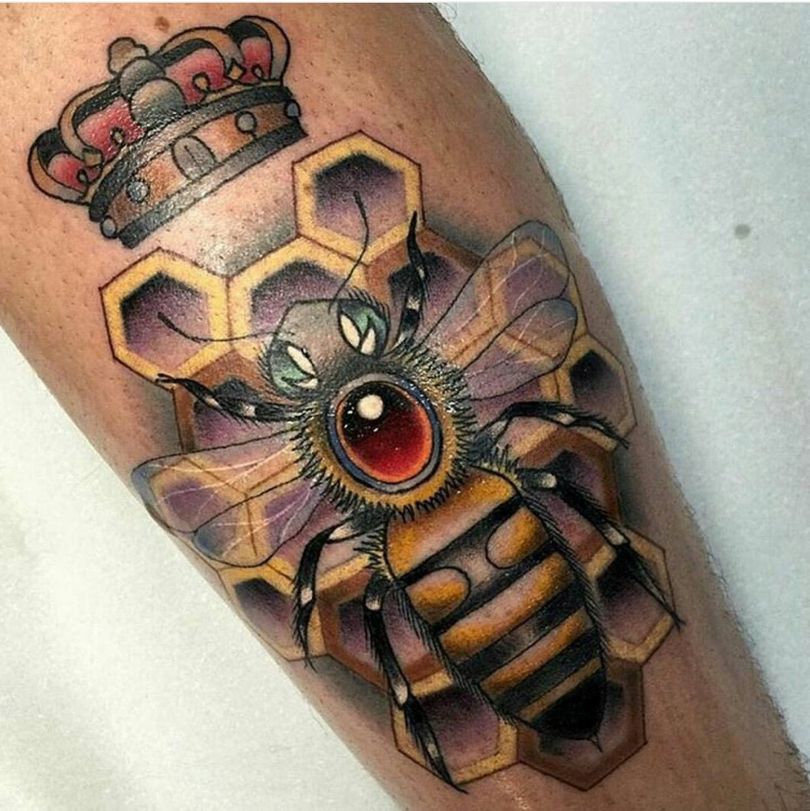 Obstajajo možnosti za tetovaže čebeljih panjev v črni in beli barvi. Ni težko uganiti, da bo največji učinek imela celostna slika z velikim številom celic. Najbolje je videti barvna slika z nenavadnim barvnim ozadjem.