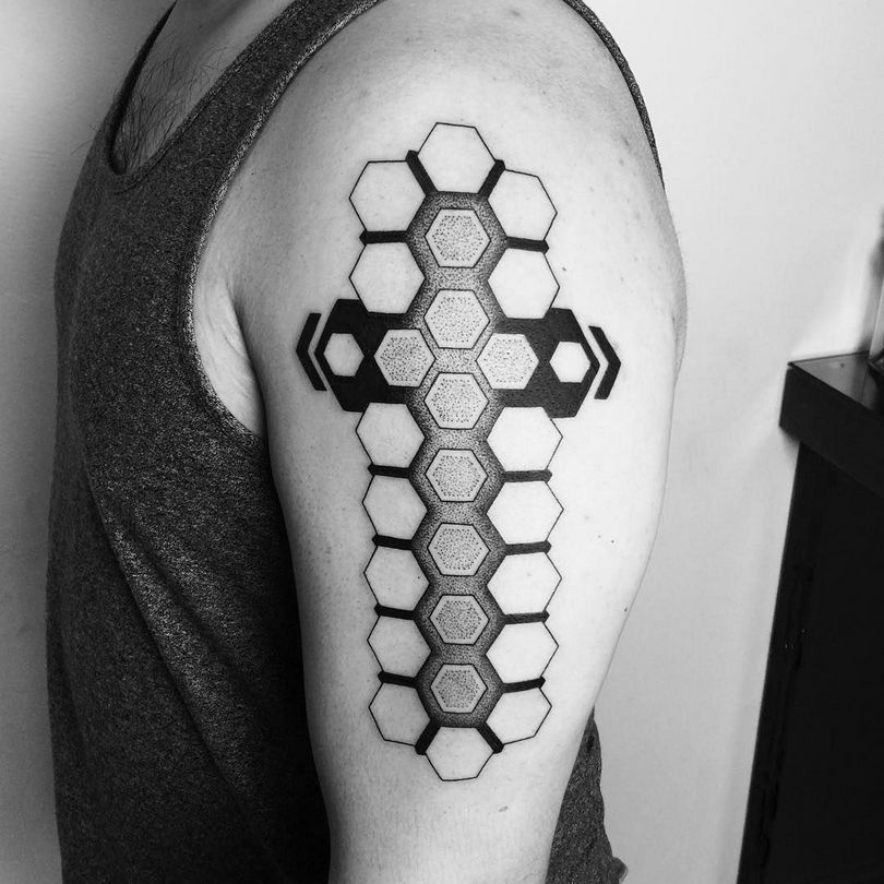 - V vzorcu tetovaže čebeljega satja na telesu je vgrajen dober filozofski pomen. Lahko na primer pomeni enost z naravo. Težko je razumeti natančen pomen pri določeni osebi, saj je običajno v kombinaciji z drugo podobo. Pogost primer je kombinacija z lobanjo, srcem, čebelami itd.