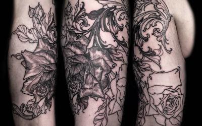 Tatouage de style baroque - description complète pour les hommes et les femmes, emplacements (bras, comme la manche), motifs inspirants, exemples de photos.