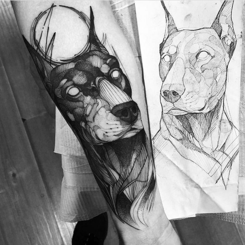 Tatuering med en Doberman - betydelser för män och tjejer, spektakulära skisser fotoidéer