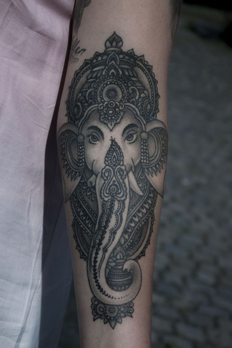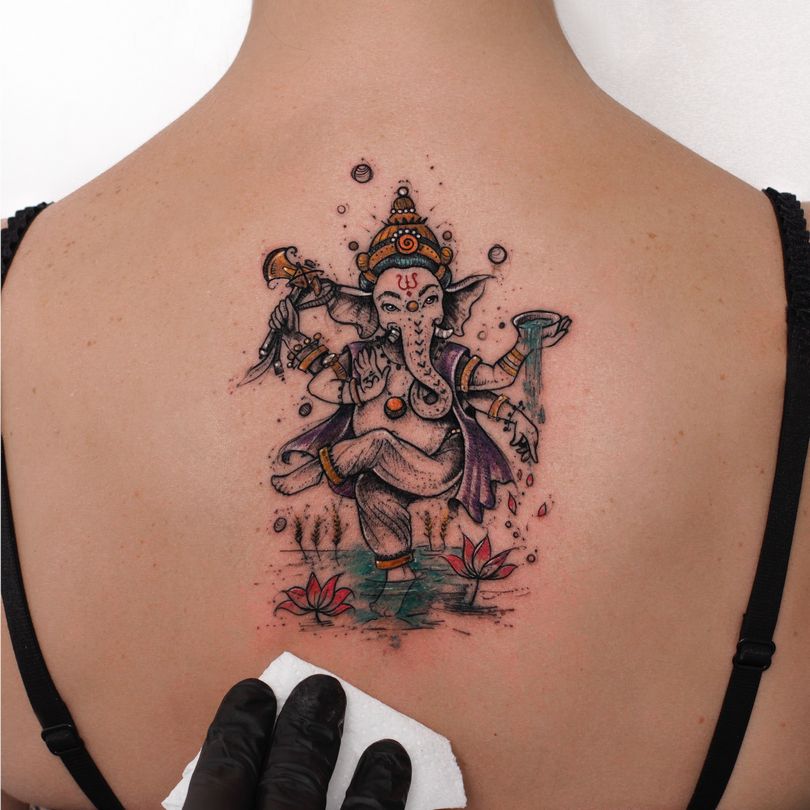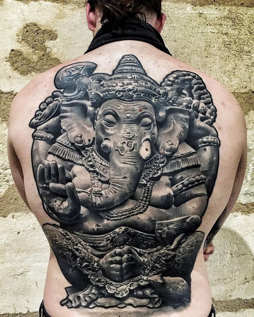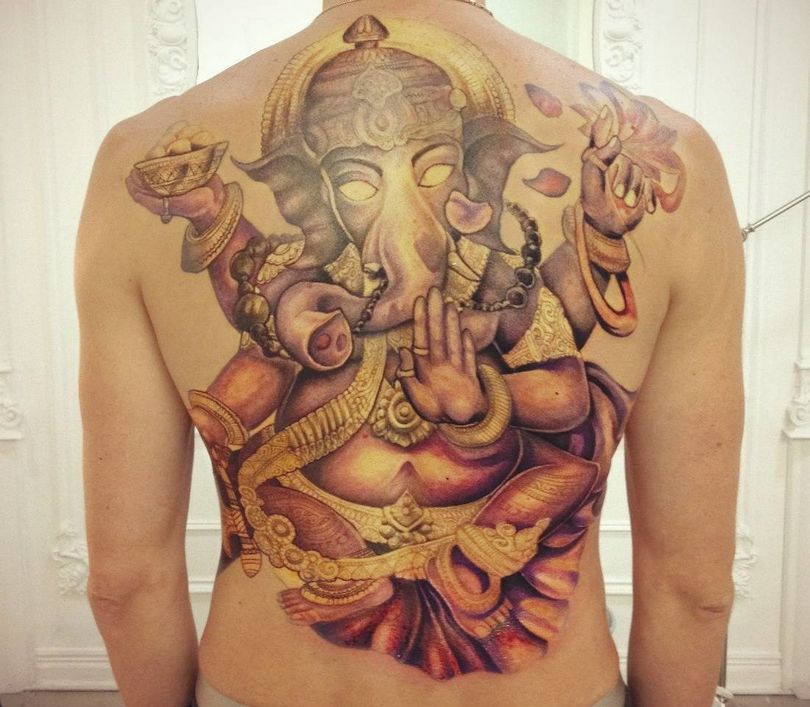 Tatueringen kännetecknas av ett överflöd av små detaljer, så för att applicera Ganesh bör vara på ryggen eller bröstet, magen, men du kan också göra det på armen, låret. Guden får dock inte tatueras på intimområden, fotleder och nedre delen av ryggen. Detta anses vara ett oacceptabelt helgerån.