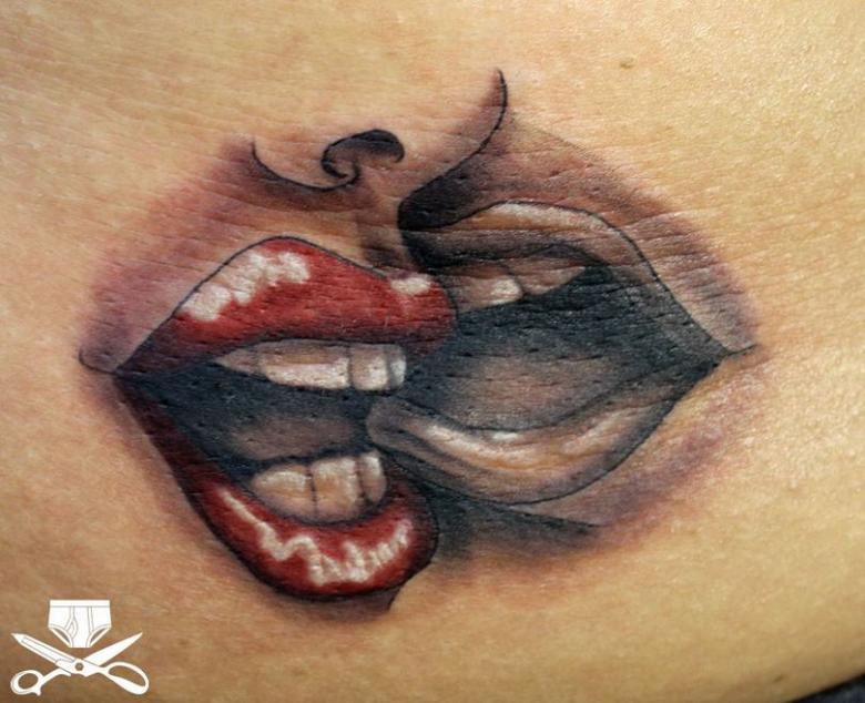 Man tror att endast självsäkra personer föredrar kyss-tatueringar. De är själva väl medvetna om sin attraktion till det motsatta könet och vet hur de ska använda den.