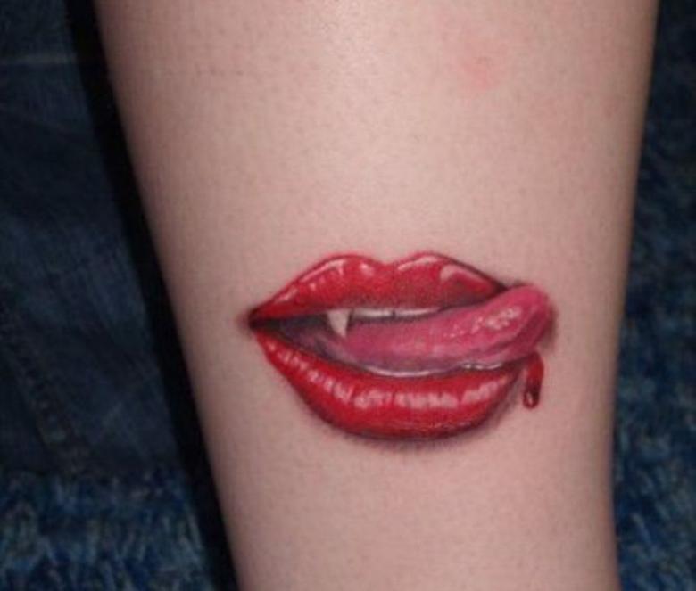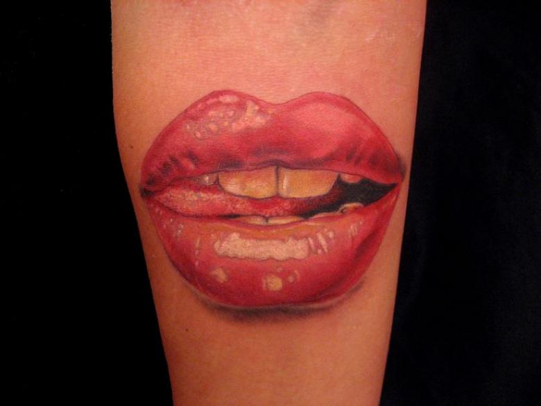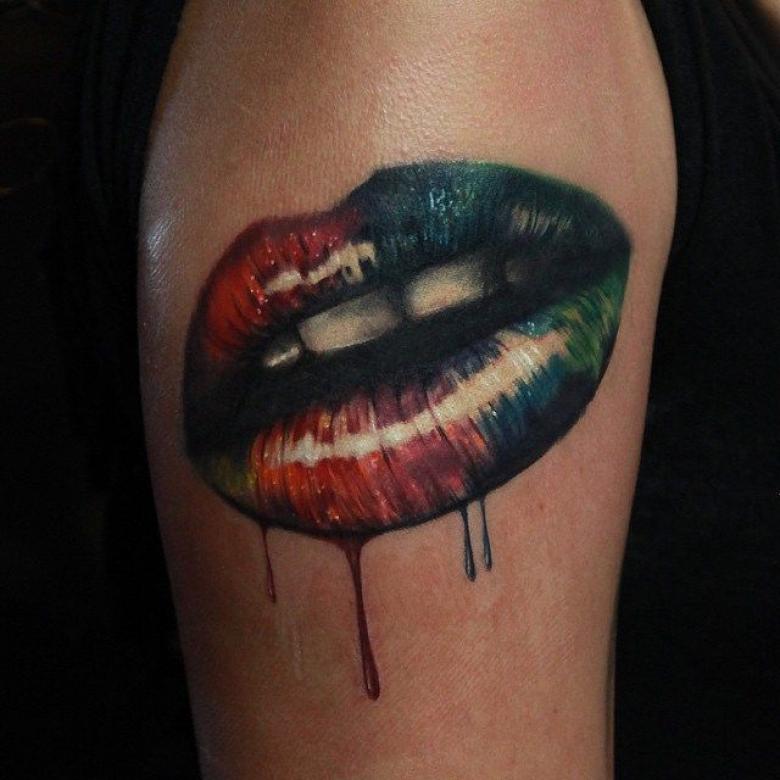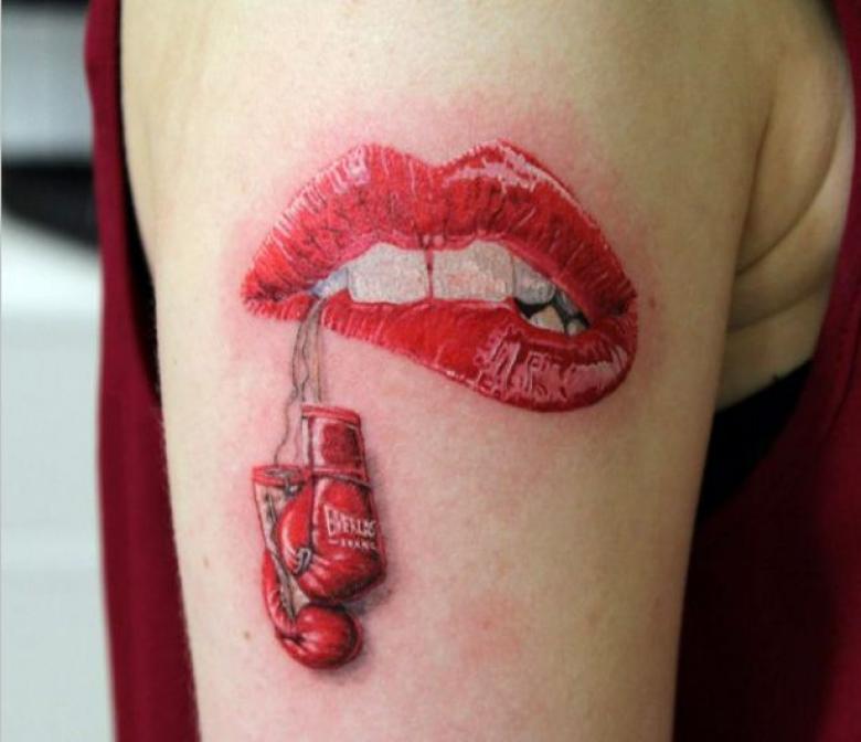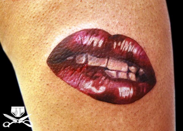 Oftast finns den här tatueringen hos flickor som vill visa sin ömhet och romantik. Men det här mönstret passar även män om de vill ha sin fräcka och excentriska karaktär. För detta måste läpparna ha en ljusröd färg.