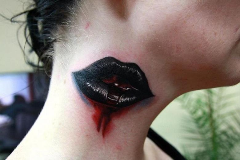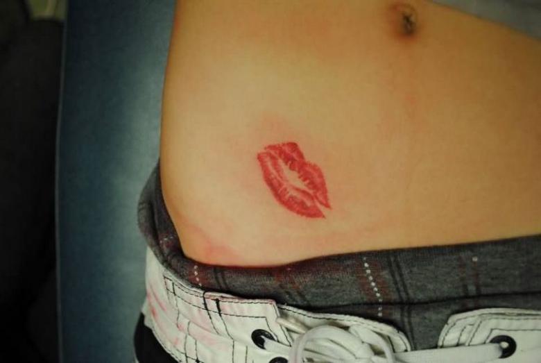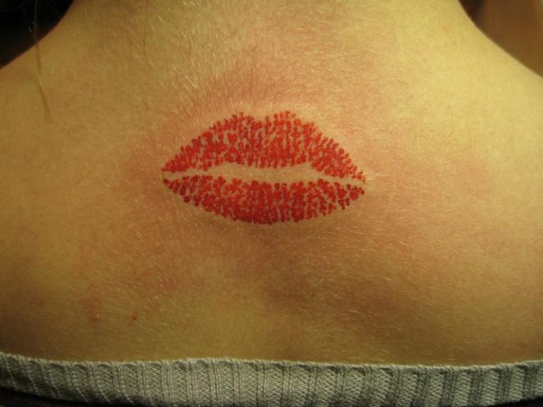 Den mest populära tatueringsdesignen är för det ljusa könet. Om en tjej bestämmer sig för att få sina läppar tryckta på rumpan, halsen eller bröstet vill hon visa sin sexualitet och sin kärlek till det roliga. De är ofta flyktiga, byter ständigt partner och gillar inte att komplicera sina liv.