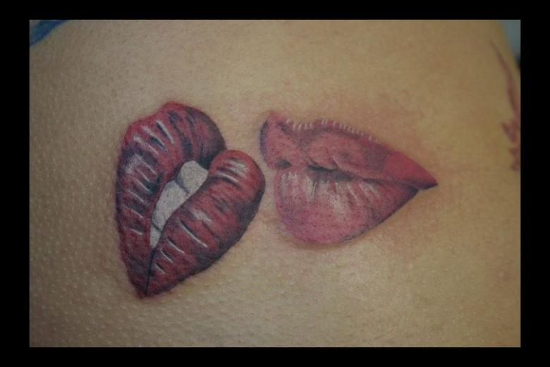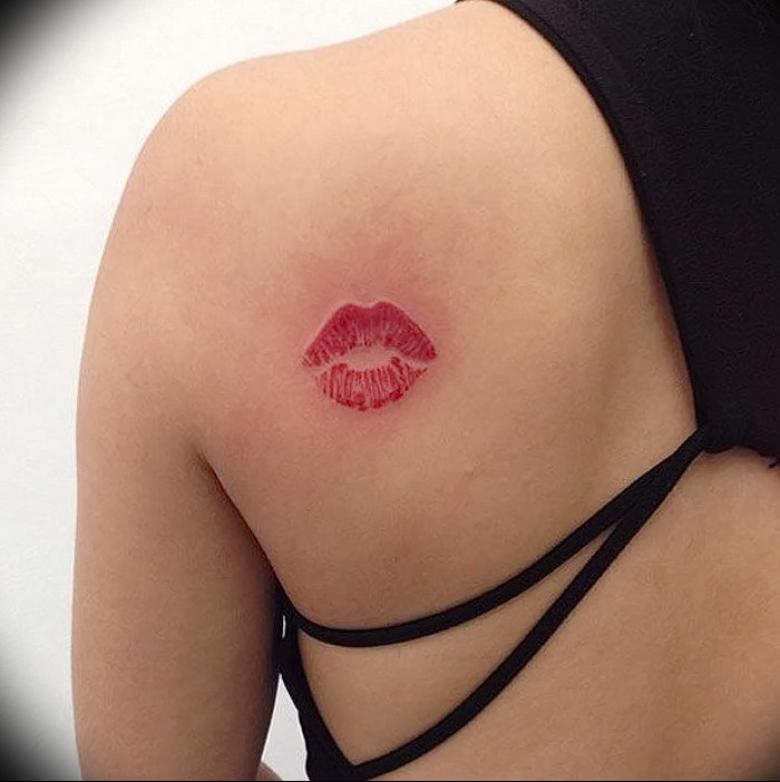 En annan betydelse av en kyss tatuering är lämplig för dem som vill inleda ett förhållande och träffa sitt livs första kärlek. I det här fallet ska tatueringens utformning vara mycket exakt med alla fina detaljer.