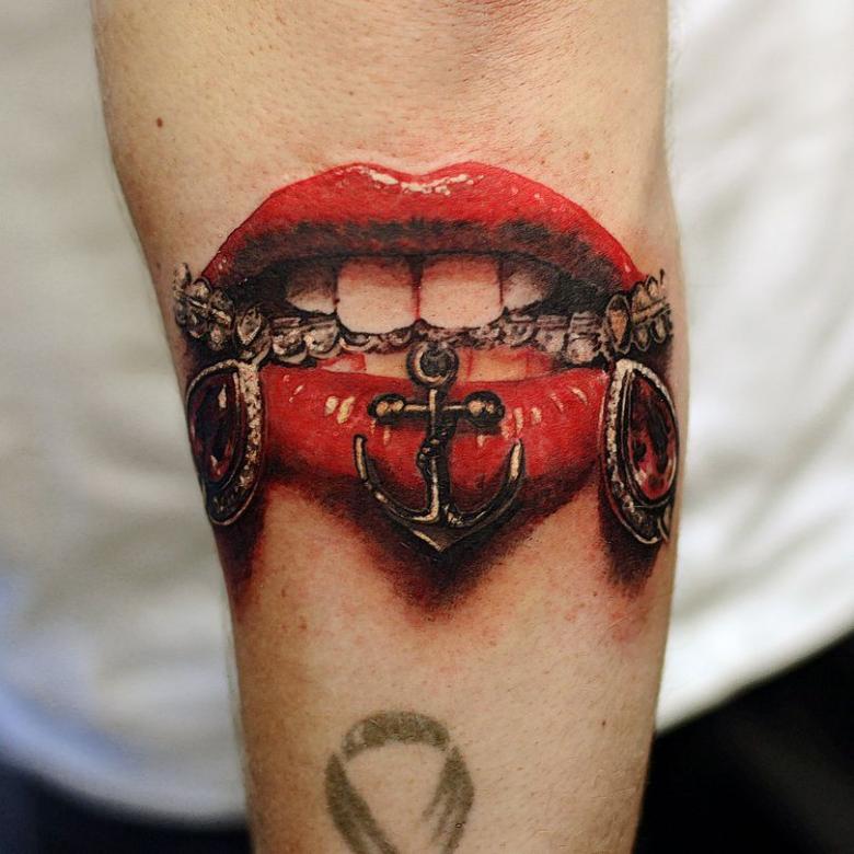 Om du vill att en kroppsbild ska representera rikedom eller sträva efter det, kan du göra det. tatuering Läpparna i scharlakansrött kommer att göra susen. Människor som har valt en sådan skiss för sig själva kan inte vara nöjda med ett liv med genomsnittlig inkomst, de vill få det bästa och bästa i livet. och dyrt. De köper märkeskläder, äter på berömda restauranger, följer modet, strävar efter hög social status och är ofta gäster vid sociala sammankomster.