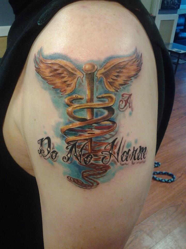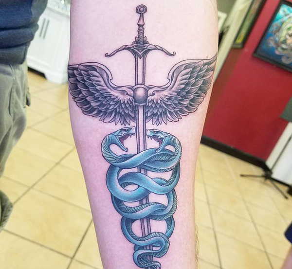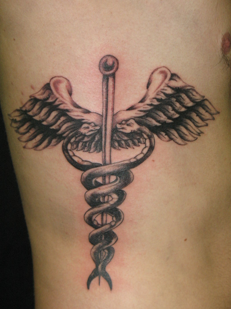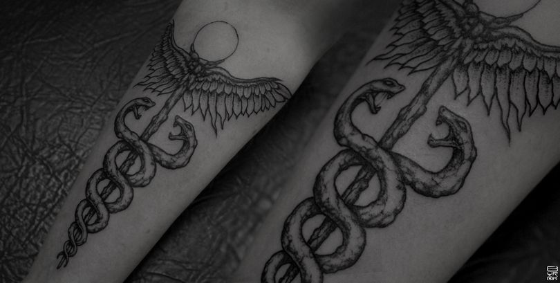 Caduceus är en av världens äldsta avbildningar och dess tolkning är mångfacetterad. Det är inte ovanligt att denna bild appliceras på kroppen i form av en tatuering. Symboliken betyder säkert mycket för bäraren, men den är inte lätt att avslöja.