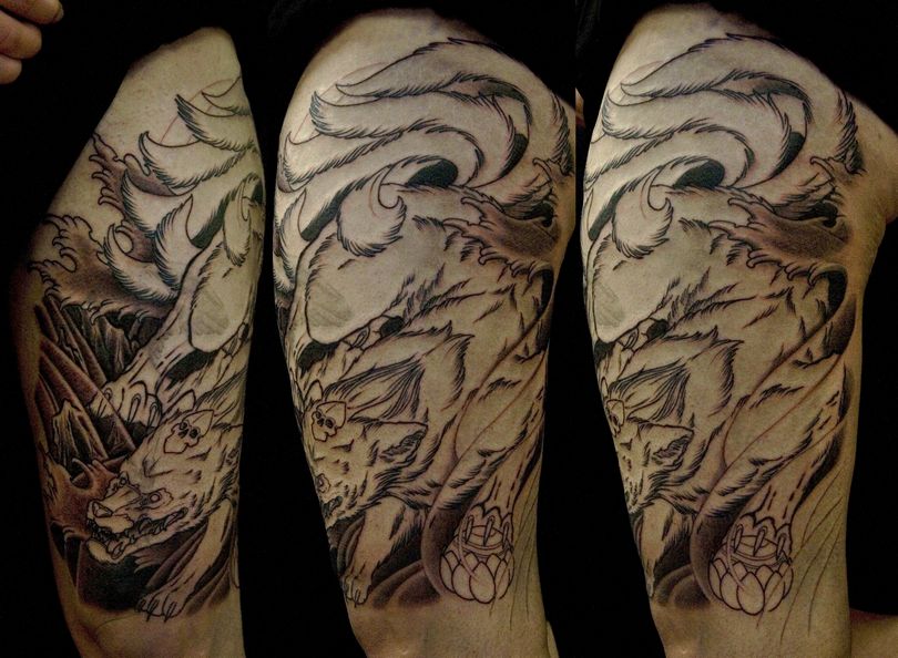 Om kitsunen placeras över skallen eller har sin tass på den anses den vara en symbol för dominans, inte bara över levande varelser utan också över döden. Bäraren av en sådan tatuering erkänner inte den svarta mästarinnan som sin jämlike.