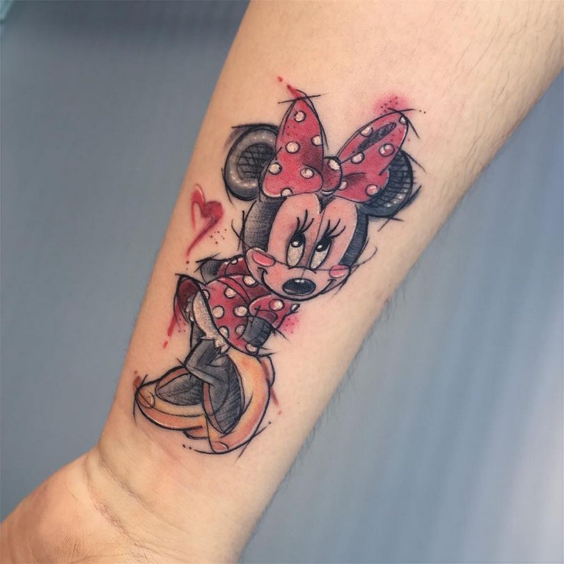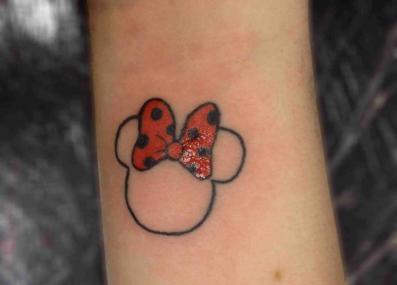Publiken är van vid att se henne i stora ljusa skor och utställda klänningar. Om syftet med tatueringen är att uttrycka Musse och Minnies eviga kärlek genom tatueringen ska båda mössen tatueras på kroppen.