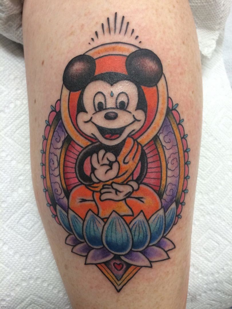 Tatuering Musse Pigg blev populär från - för Walt Disneys teckningar. Denna bild har länge varit trovärdig i miljontals människors ögon. Han är ovanlig, vacker och rolig. En sådan mus är alltid en glädje för vuxna och barn. Kvinnor och män gör tatueringar med bilden av Musse Pigg för att betona sin individualitet eller för att uttrycka känslor genom denna bild.