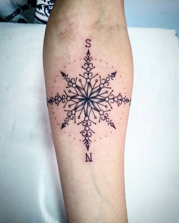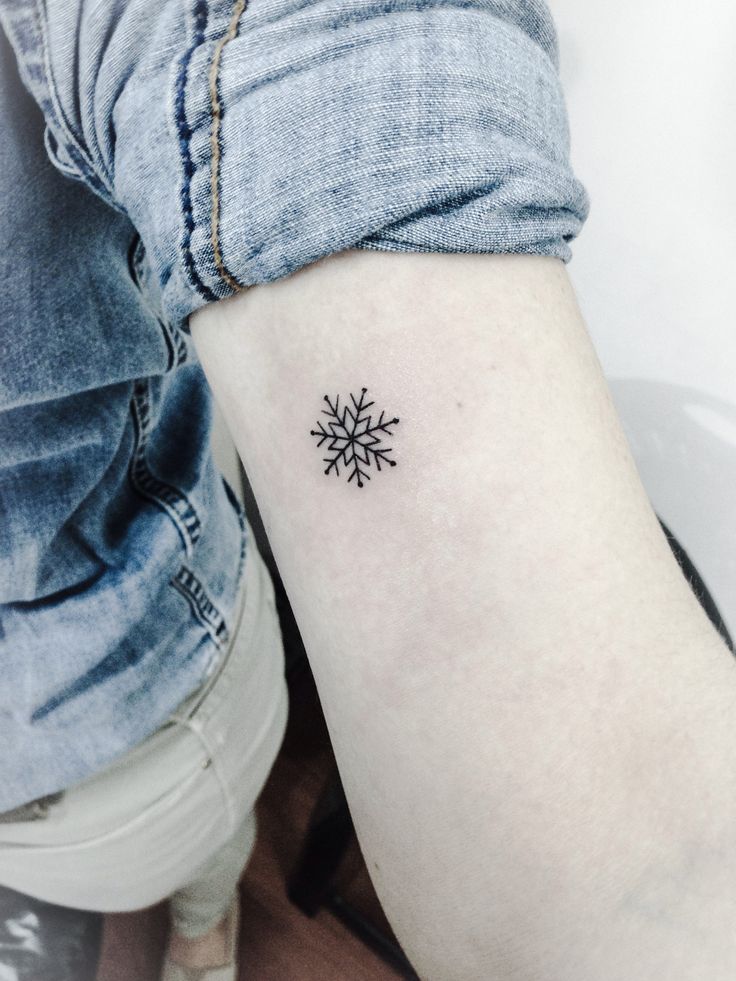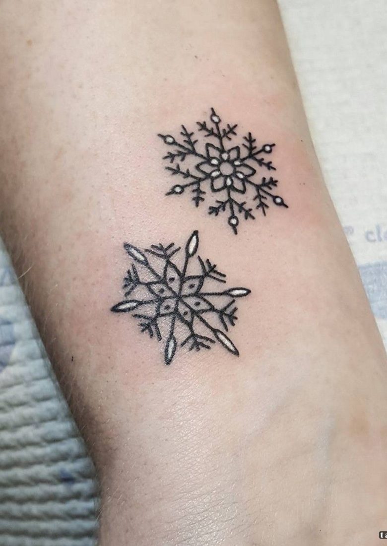 Snöflingetatueringar kan göras i olika stilar. Du kanske föredrar en som har minimala linjer och designen är gjord i ren svart.
