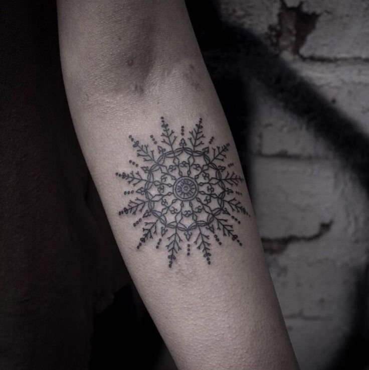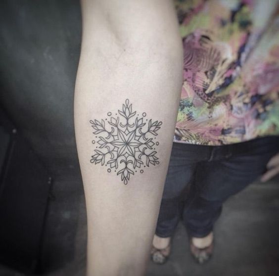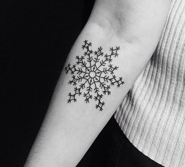 Geometrisk snöflingetatuering - geometriska snöflingor kan läggas till som fyllning i en geometrisk tatuering eller skapa en perfekt snöfallsscen med dem.
