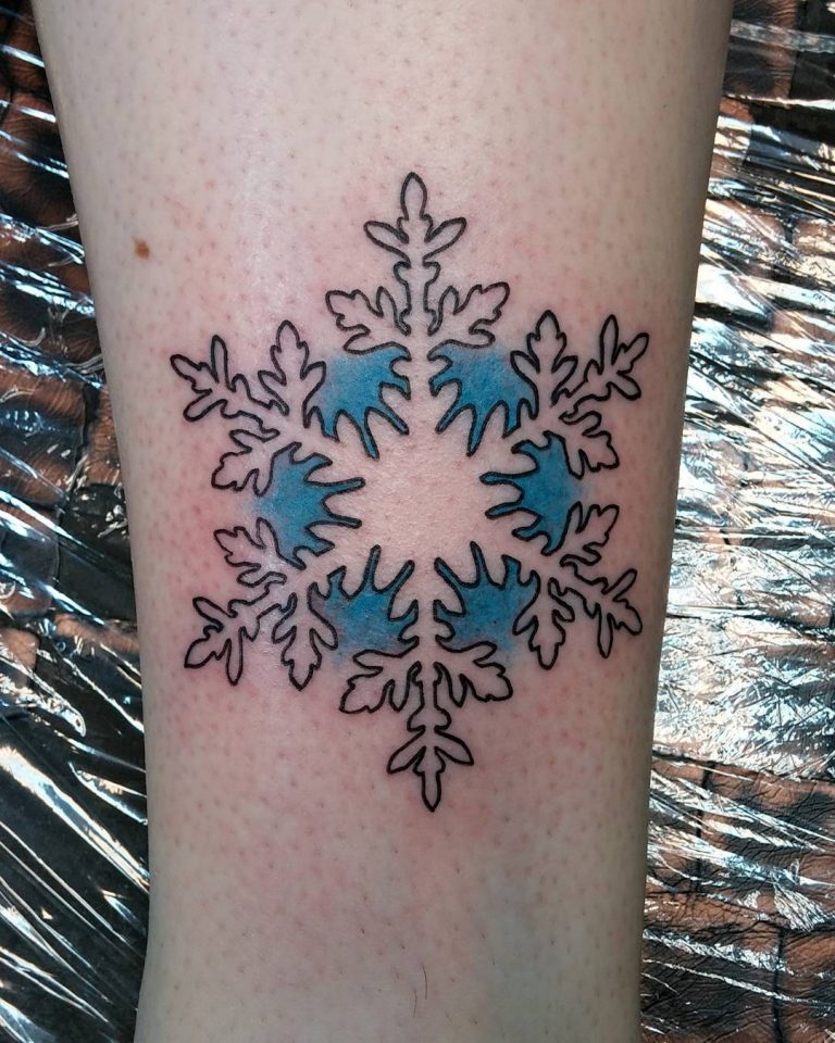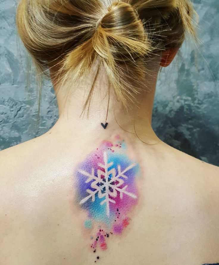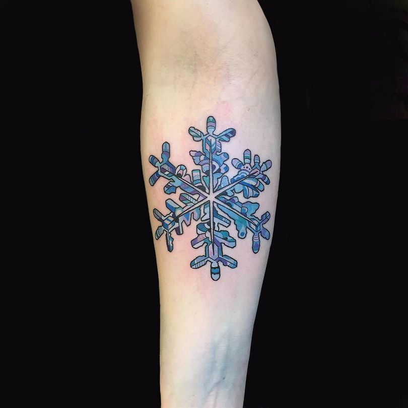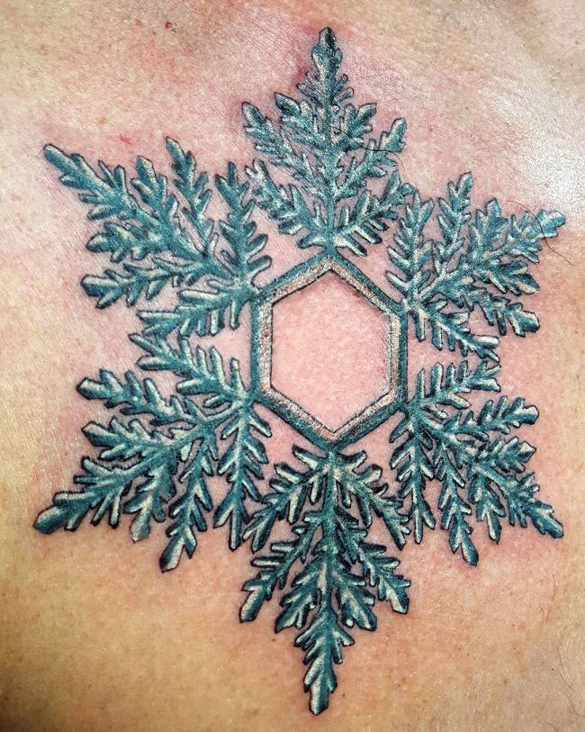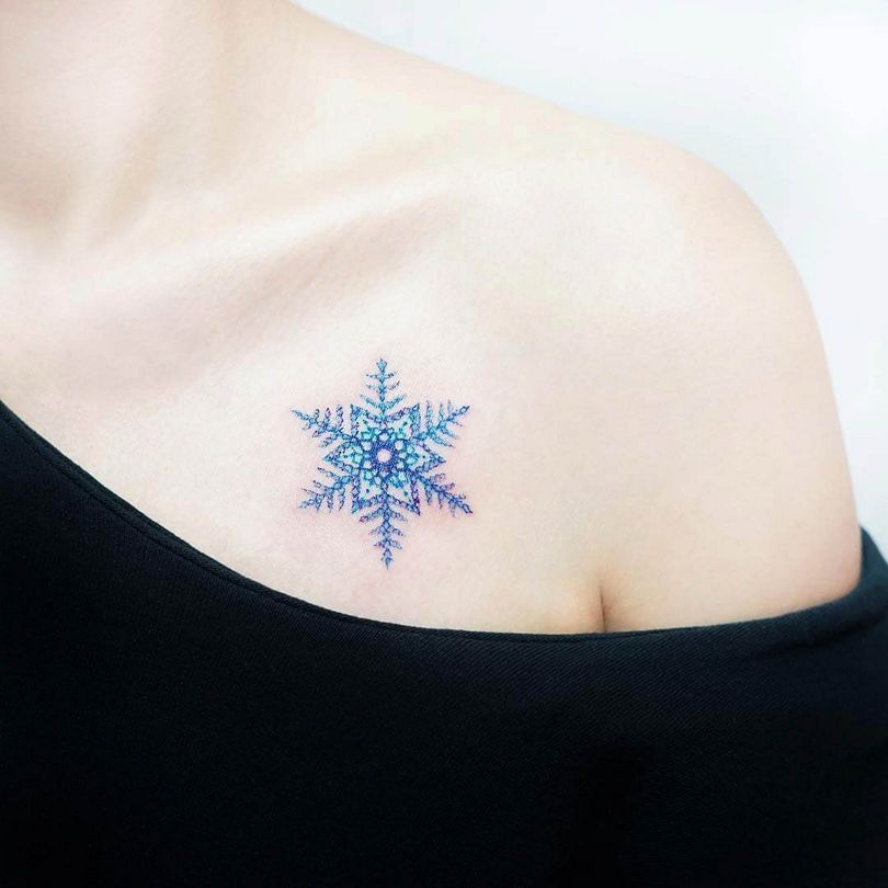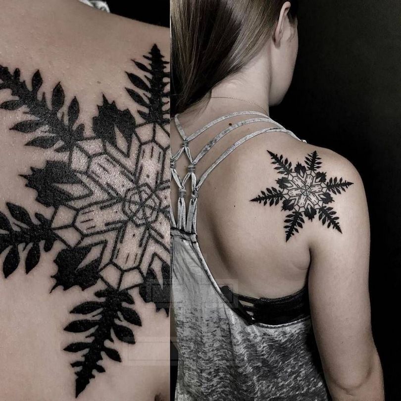 En stor snöflinga i 3D-stil är perfekt för axeln eller ryggen. En del människor får också en söt liten snöflinga tatuerad bakom örat.