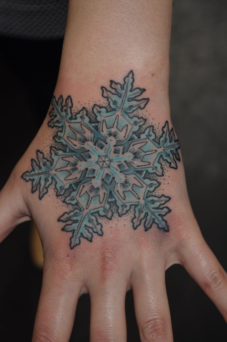 Tattoo snowflake - mening och skisser, plats (hals, hand, handled, finger), kreativa bilder