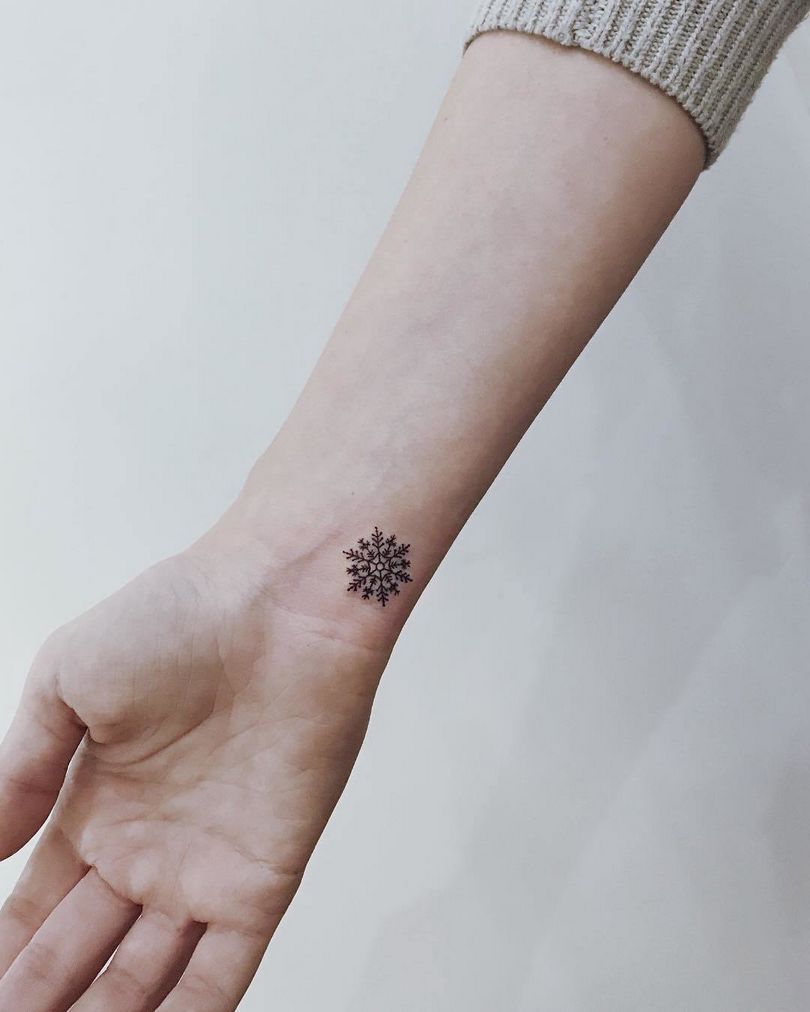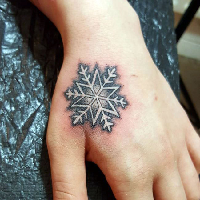 En liten snöflinga kan sitta var som helst: på fingret, på handleden eller någon annanstans på handen. Det är det perfekta tillägget för dem som har flera små minitatueringar på samma ställe.