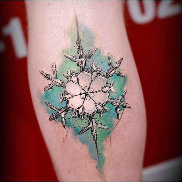 Akvarell tatueringar med snöflingor läggs ofta till som mindre mönster till en större och mer meningsfull tatuering. De flesta lägger till dem i traditionella mönster, men snöflingor är lika vackra i akvarelltatueringar.