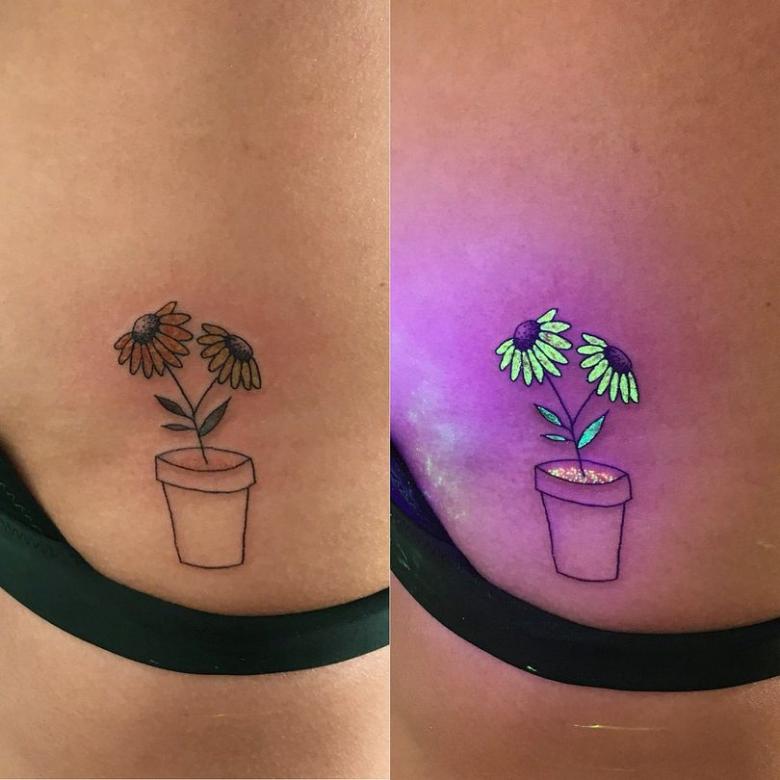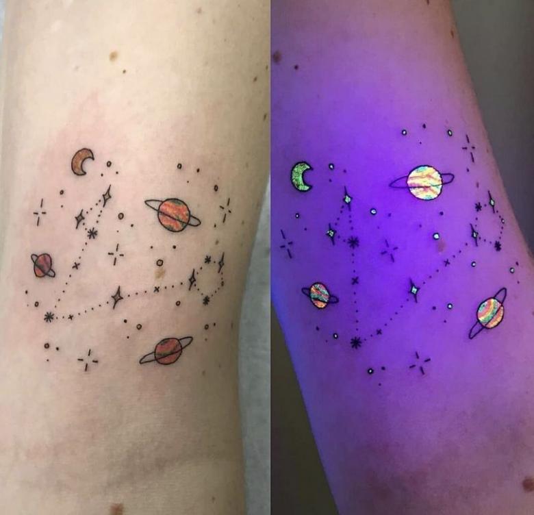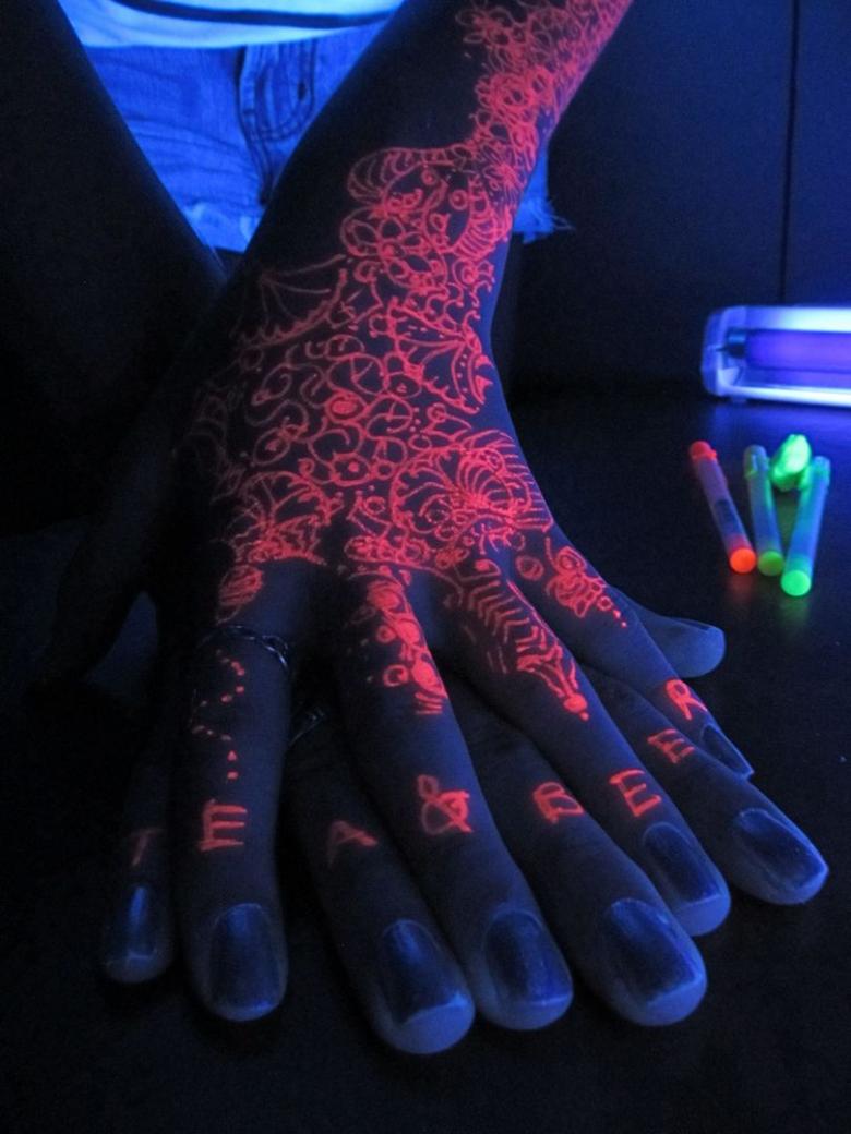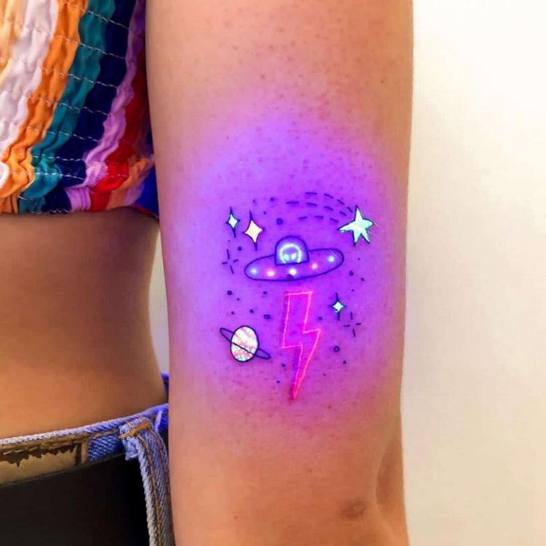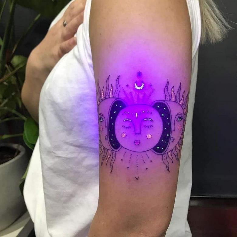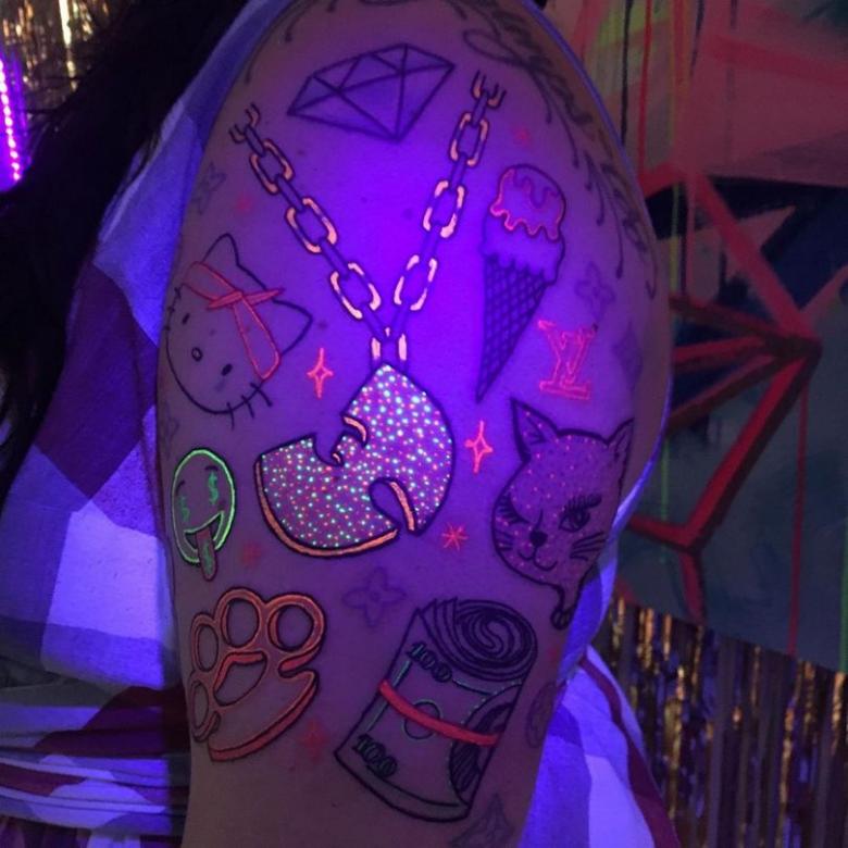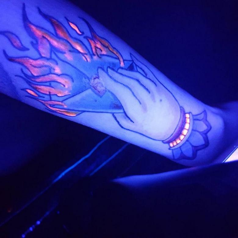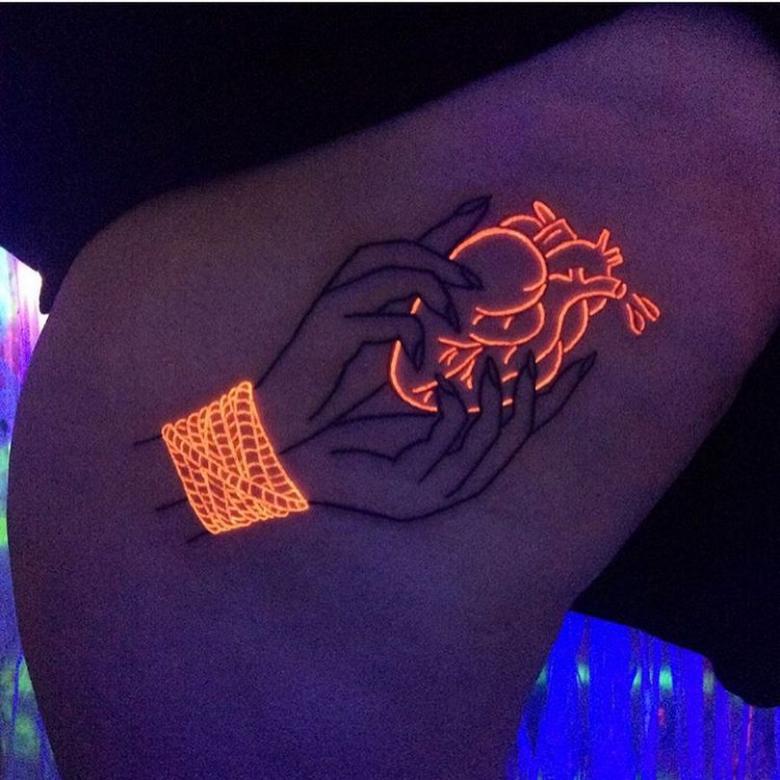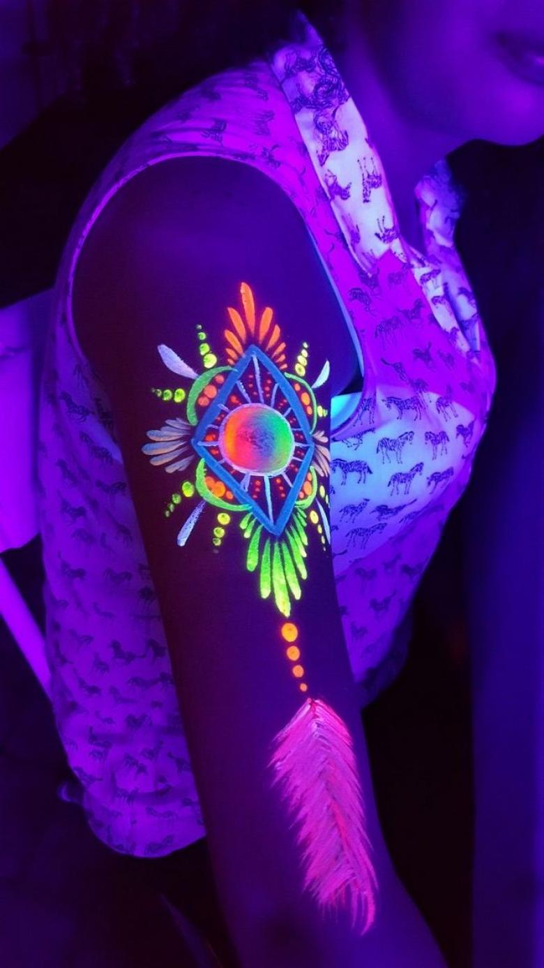 Tatouage lumineux - comment choisir la peinture, soins et cicatrisation après application, dessins créatifs et photos