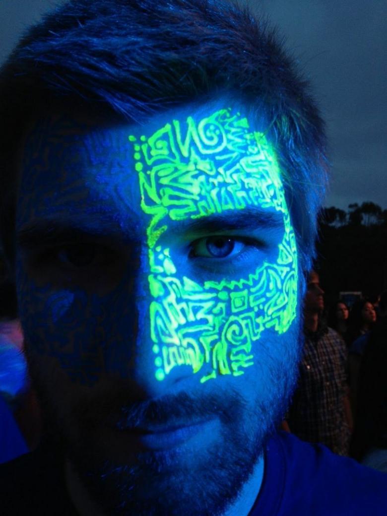 Le moyen d'attirer l'attention sur soi est de réaliser un dessin corporel qui réagit à la lumière ultraviolette. À cette époque, du phosphore était ajouté à l'encre, ce qui provoquait diverses maladies de la peau et autres. Aujourd'hui, la composition chimique de l'encre ne contient pas d'ingrédients nocifs pour l'organisme.