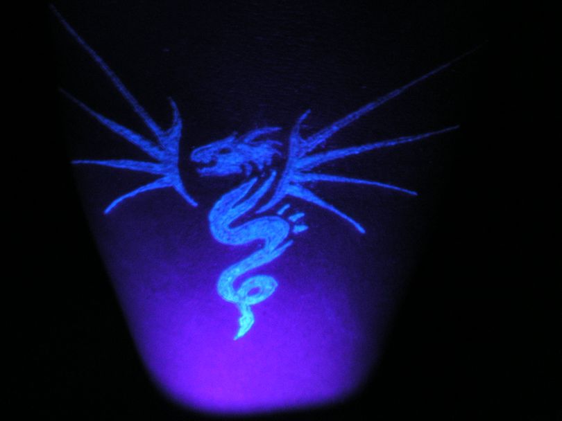Il y a encore une chose à considérer. Si le porteur décide de chevaucher le tatouage lumineux, l'aspect du nouveau ne sera pas le même que celui du croquis. L'encre de couleur se déposera mais sera terne. Les éléments lumineux du tatouage superposé ne fonctionneront plus.