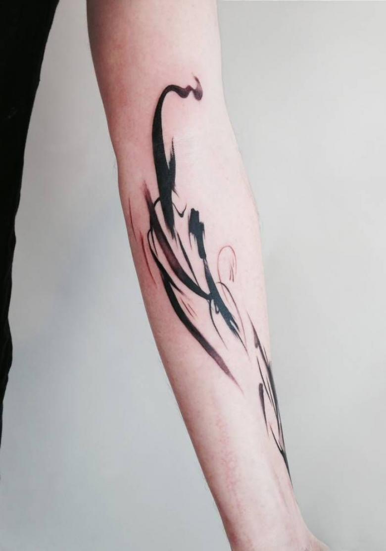 L'éclaboussure d'encre est un autre type de tatouage abstrait qui peut inclure ou non des lignes de contour pour former une forme spécifique. Des éclaboussures d'encre, semblables à des éclaboussures de peinture, sont utilisées pour accentuer la forme.