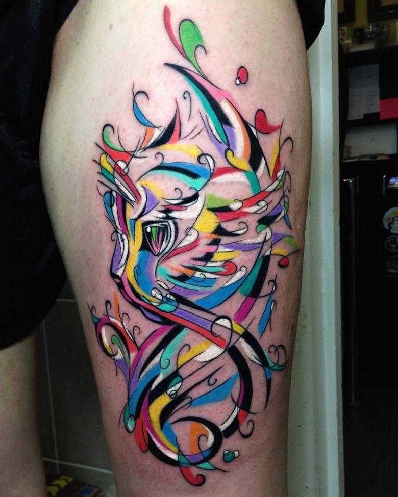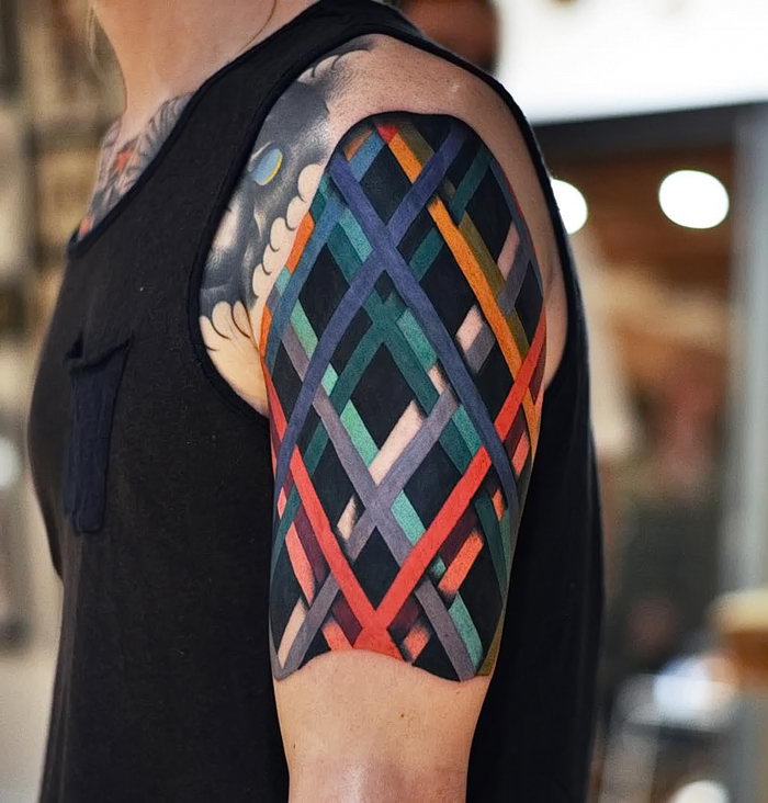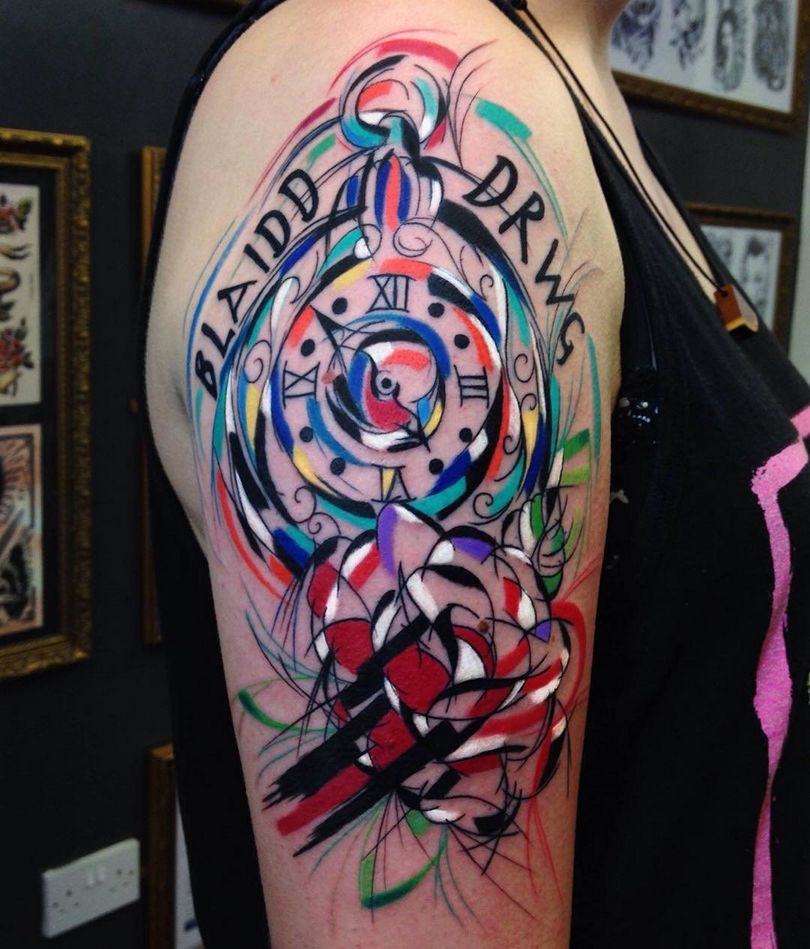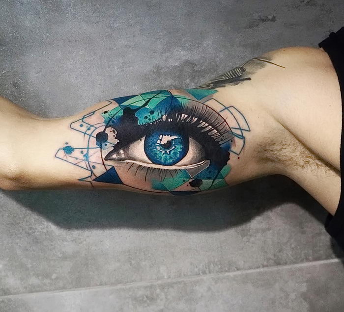 Un tatouage abstrait de style Picasso qui utilise des formes et des lignes pour créer une forme humaine, différente de l'image typique de la réalité, peut être dilué avec de la couleur. Des exemples de ces tatouages ont été rendus populaires au Royaume-Uni par Expanded Eye Tattoo, qui se spécialise dans son propre style d'abstraction inégalé.