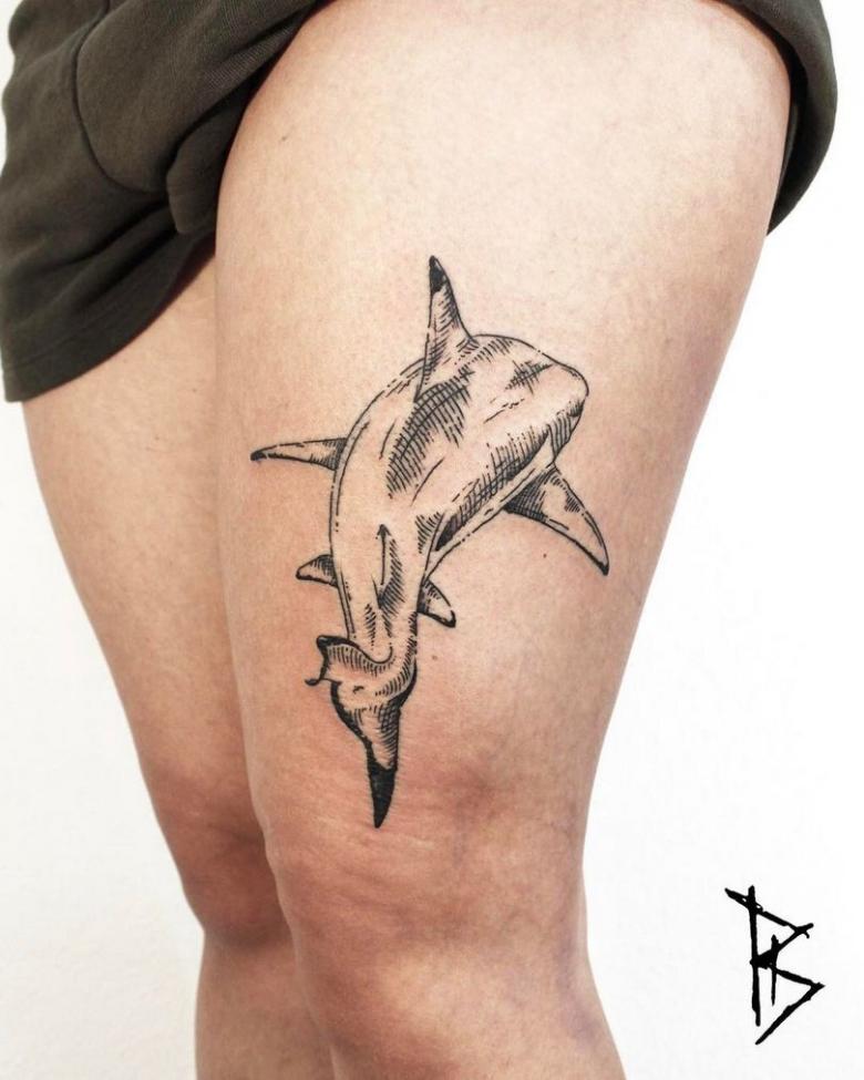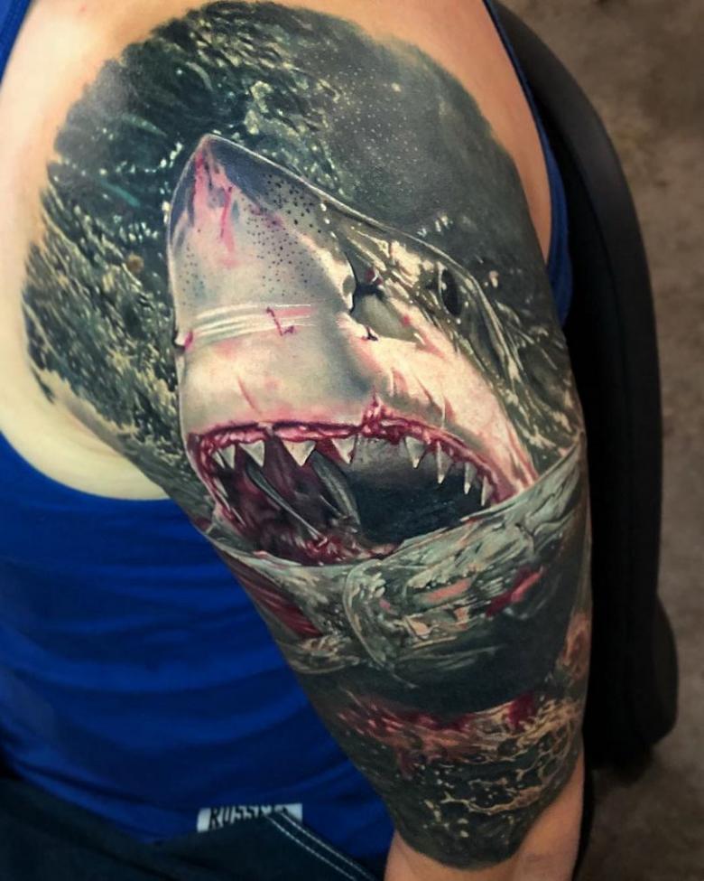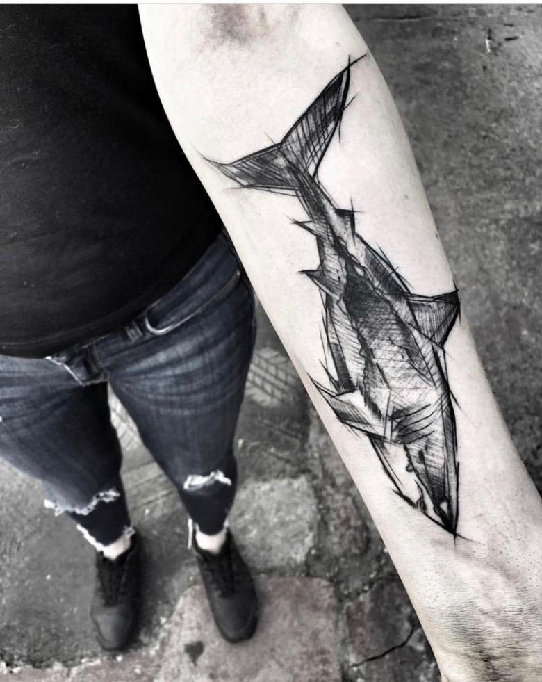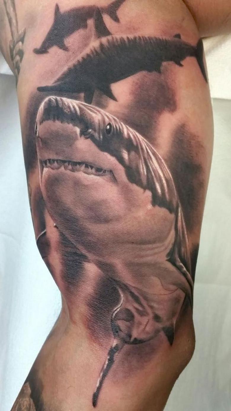 Tattoo shark - options de croquis pour hommes et femmes, placement (sur le bras, la jambe, l'épaule, la poitrine), photos amusantes