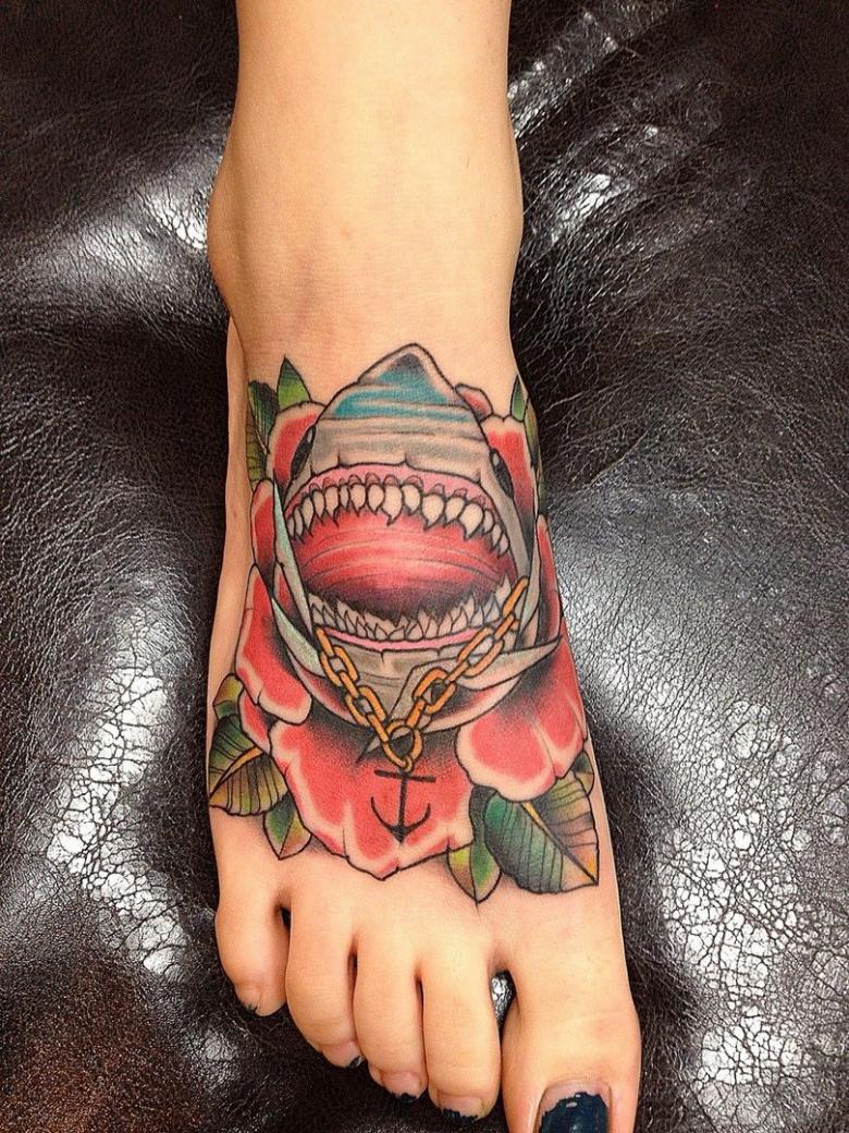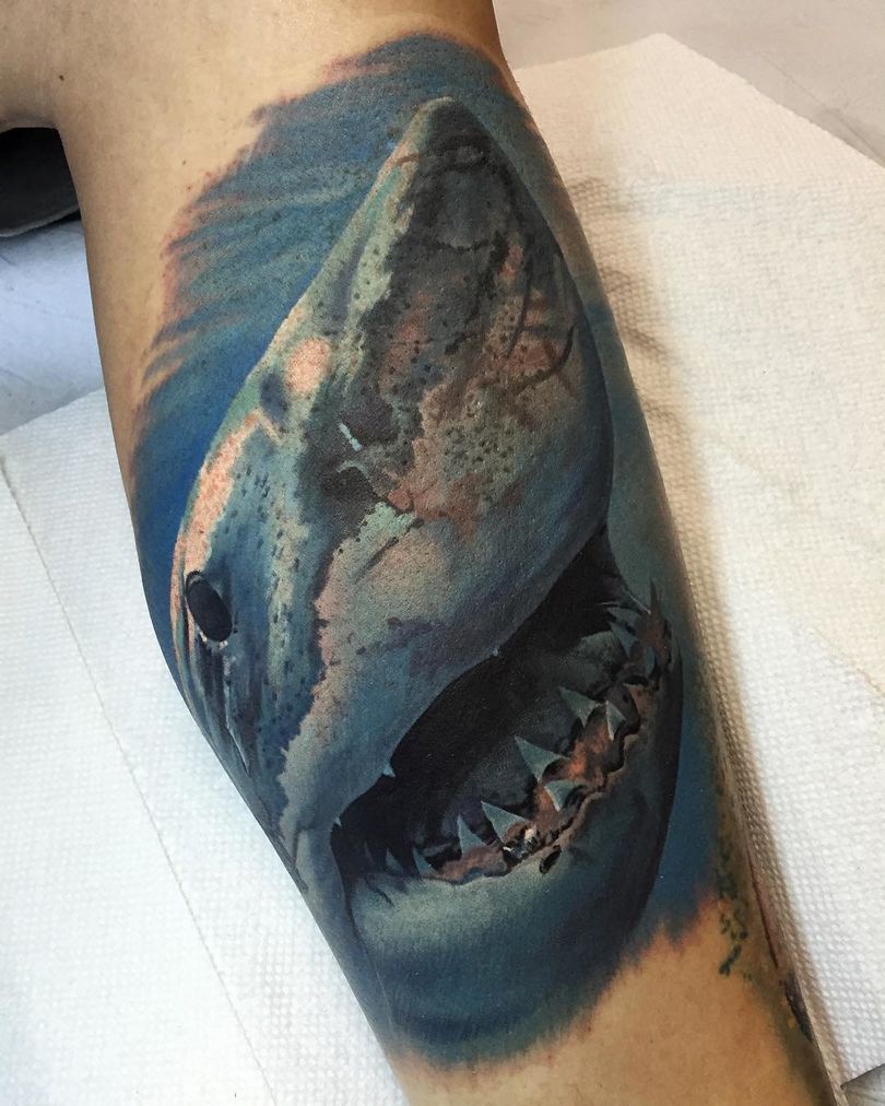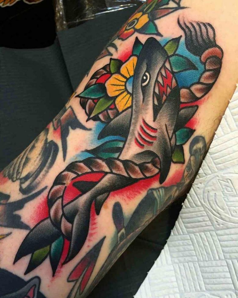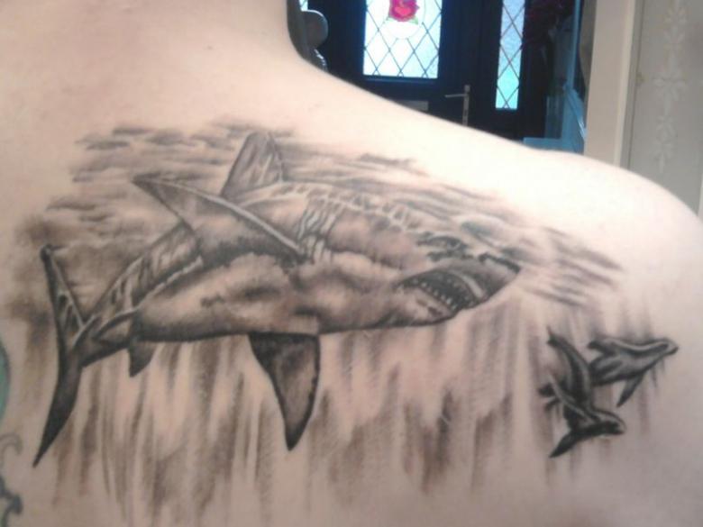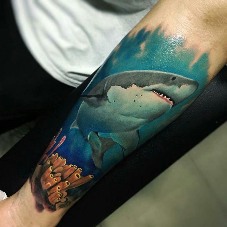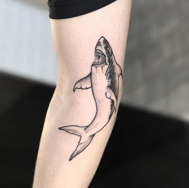 Pour trouver une composition réussie en combinant un requin et d'autres éléments, il est nécessaire de regarder de nombreuses photos dans divers catalogues. S'il est difficile de choisir soi-même une image appropriée, nous vous recommandons de faire confiance à l'expérience d'un tatoueur.
