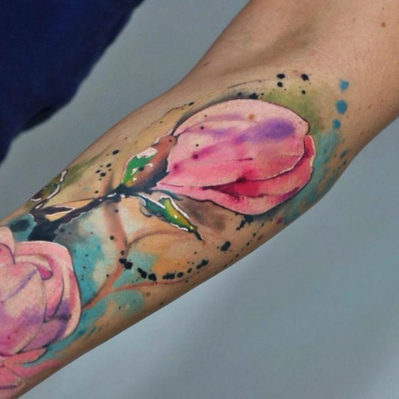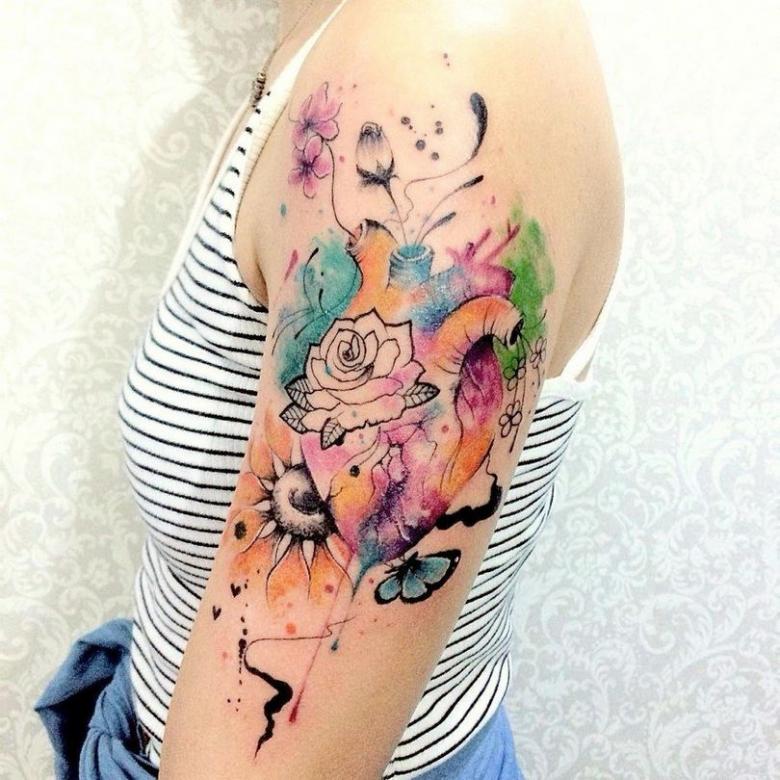 Les tatouages réalisés dans le sens de l'aquarelle sont parfaits pour les natures créatives et romantiques qui aiment l'art moderne. Ces personnes ne peuvent vivre sans idées et solutions originales.