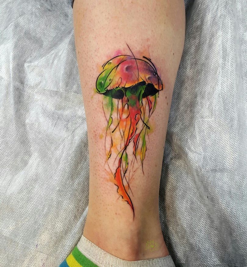 Lors de la création de tatouages à l'aquarelle, une encre spéciale est utilisée pour créer un effet de flou. Il peut sembler trop aqueux au premier abord, mais cela donne un effet d'aquarelle :