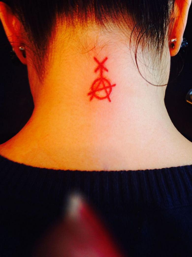 Cependant, les jolies femmes aiment aussi avoir un tatouage anarchiste sur leur corps, car ces dernières, à en juger par les avis des tatoueurs, ne sont pas moins enclines à cette doctrine politique et à cette position sur la vie.