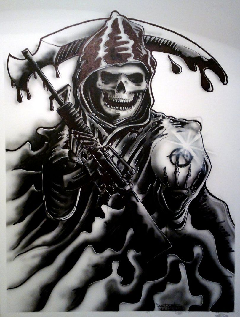 Ceux qui préfèrent un tatouage plus petit et plus modeste, utilisent le genre graphique. Ces images sont de taille modeste et d'un minimalisme apparent. Un motif populaire est l'insertion d'une image de la mort avec une faux, signe de l'apocalypse. Le tatouage peut être réalisé en couleur ou en noir et blanc, selon les préférences personnelles du client.