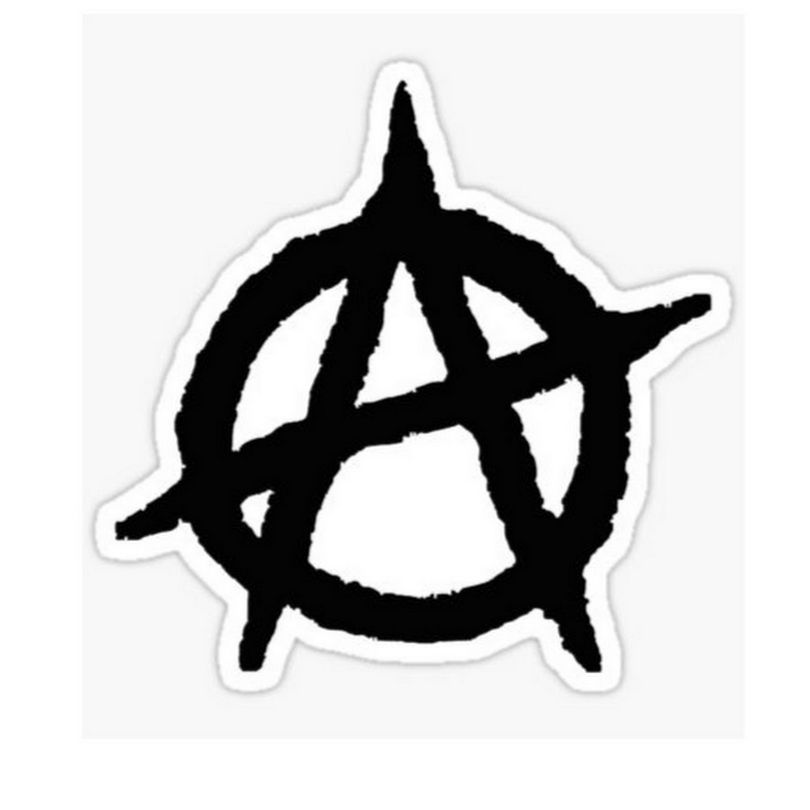 Les symboles de l'anarchie peuvent avoir plusieurs significations. Ce signe indique généralement que son porteur s'oppose au régime politique en vigueur dans le pays et ne reconnaît pas les autorités actuelles.