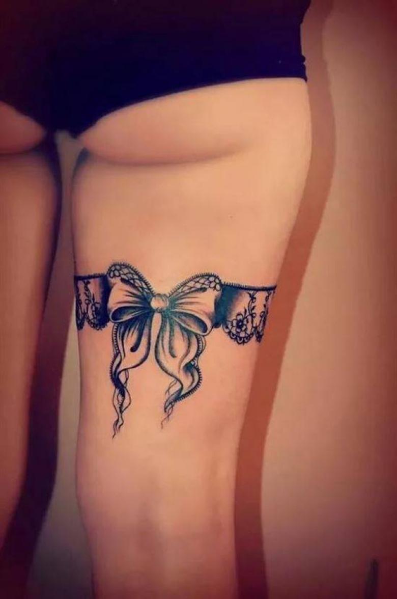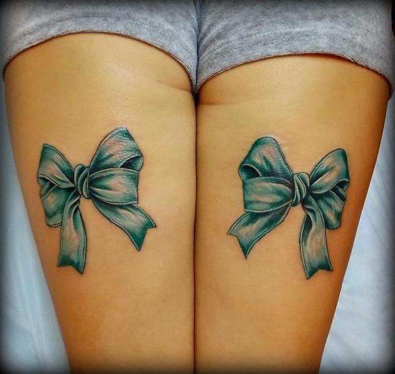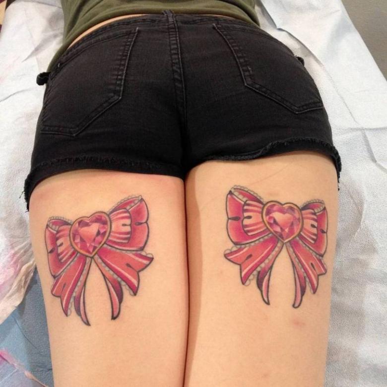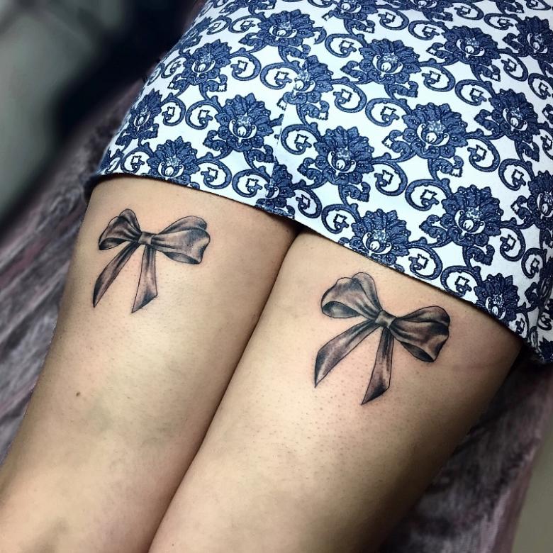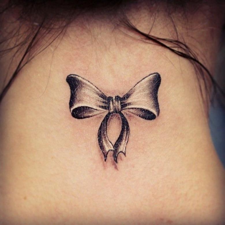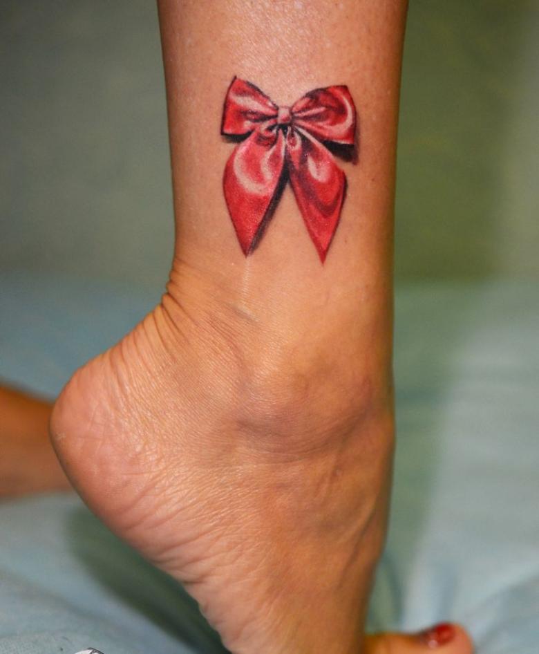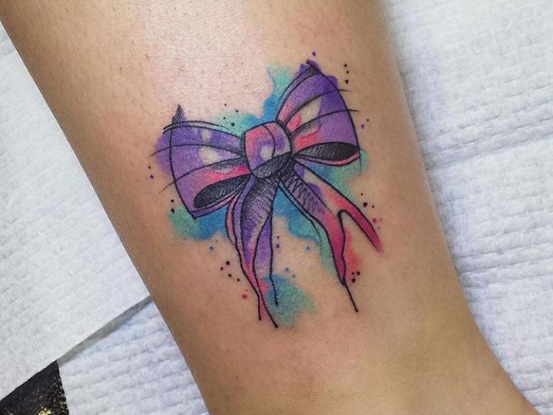 Tattoo bow - les sites d'application sur les jambes sur le côté ou le dos, les chevilles, les hanches, les cuisses, les cuisses, des croquis amusants et des photos
