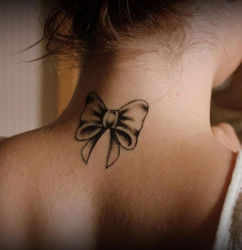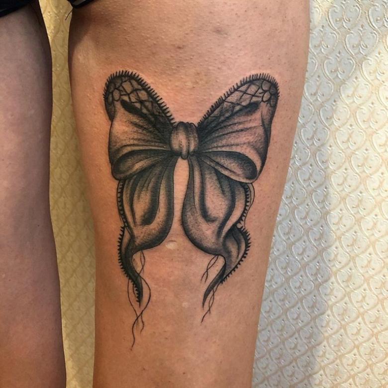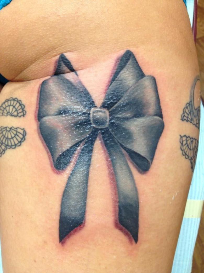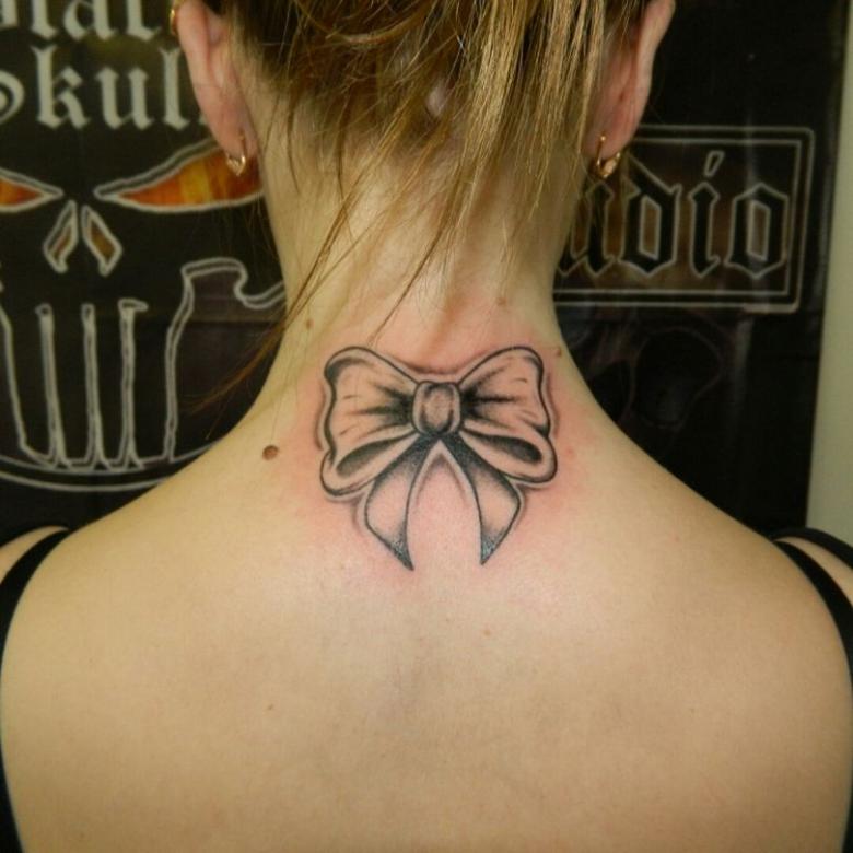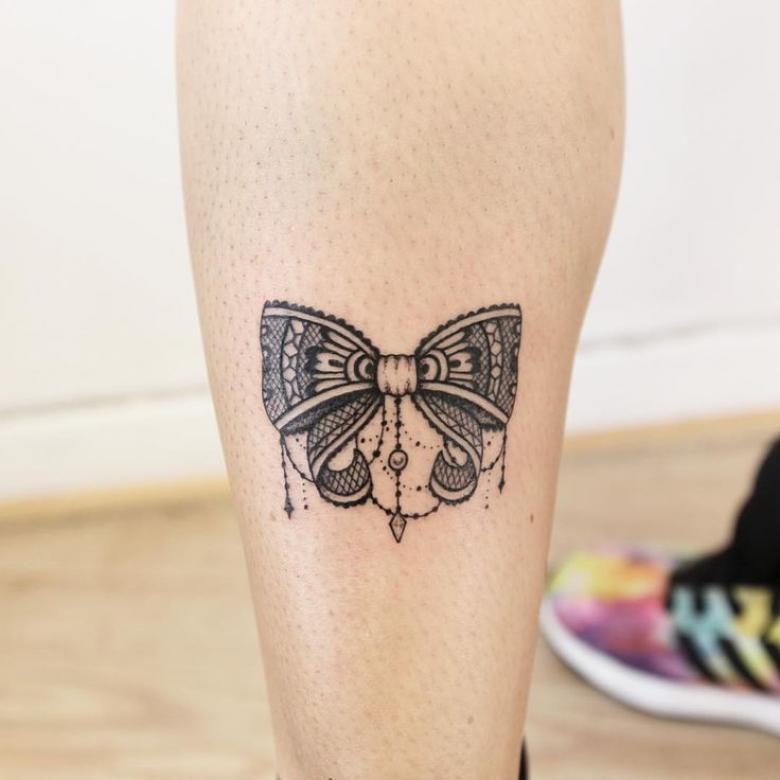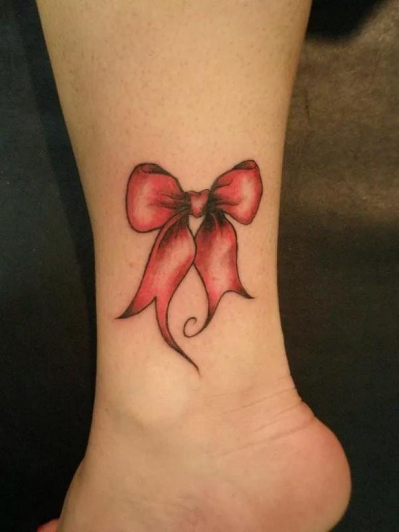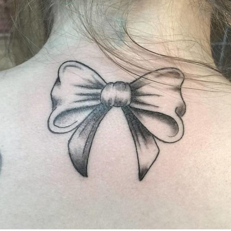 Tattoo bow - les sites d'application sur les jambes sur le côté ou le dos, les chevilles, les hanches, les cuisses, les cuisses, des croquis amusants et des photos