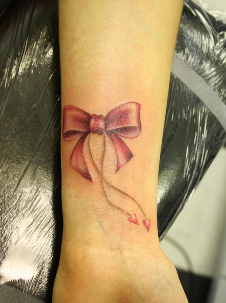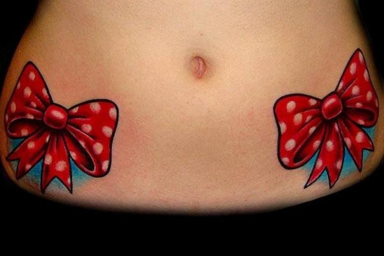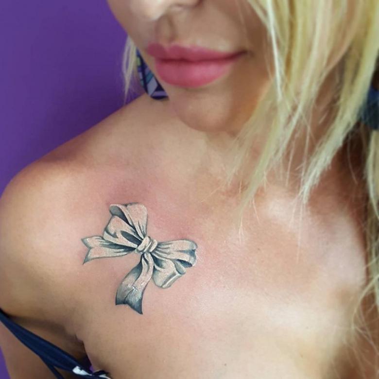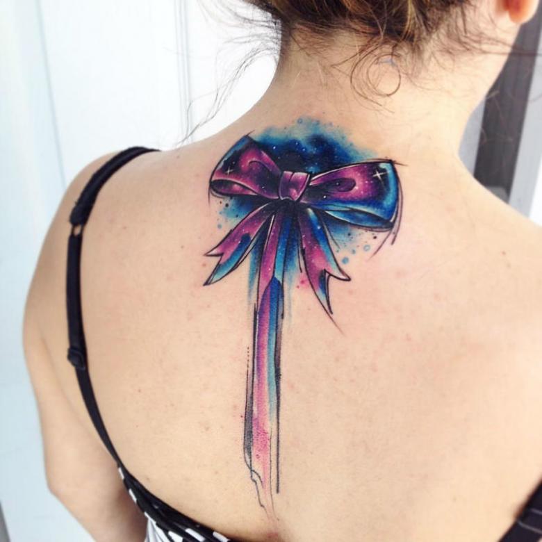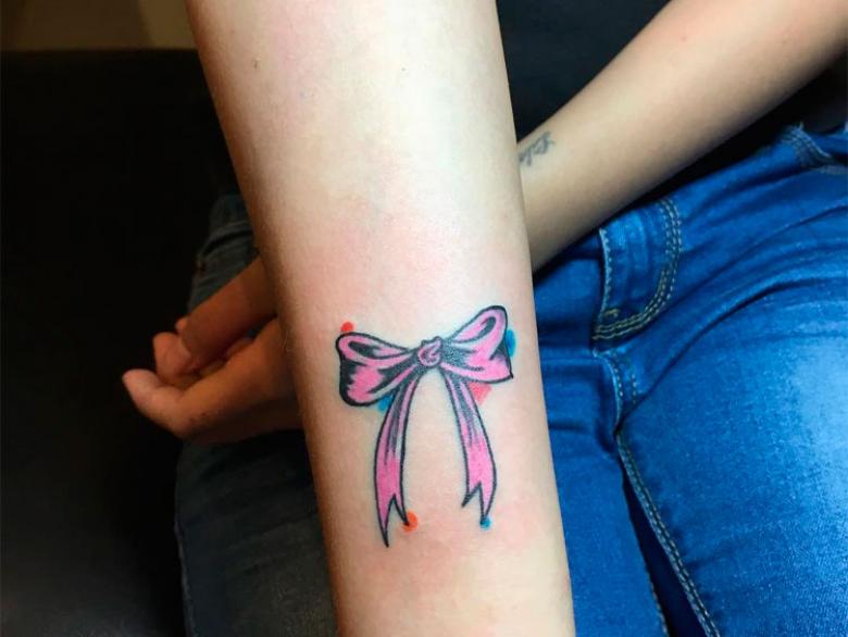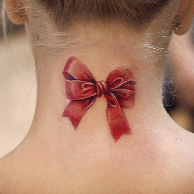 L'arc est considéré comme un symbole de beauté et d'esprit festif. On le trouve souvent sur les vêtements, les emballages de cadeaux, les fleurs. Le tatouage décore parfaitement le corps d'une jeune fille, soulignant sa féminité.