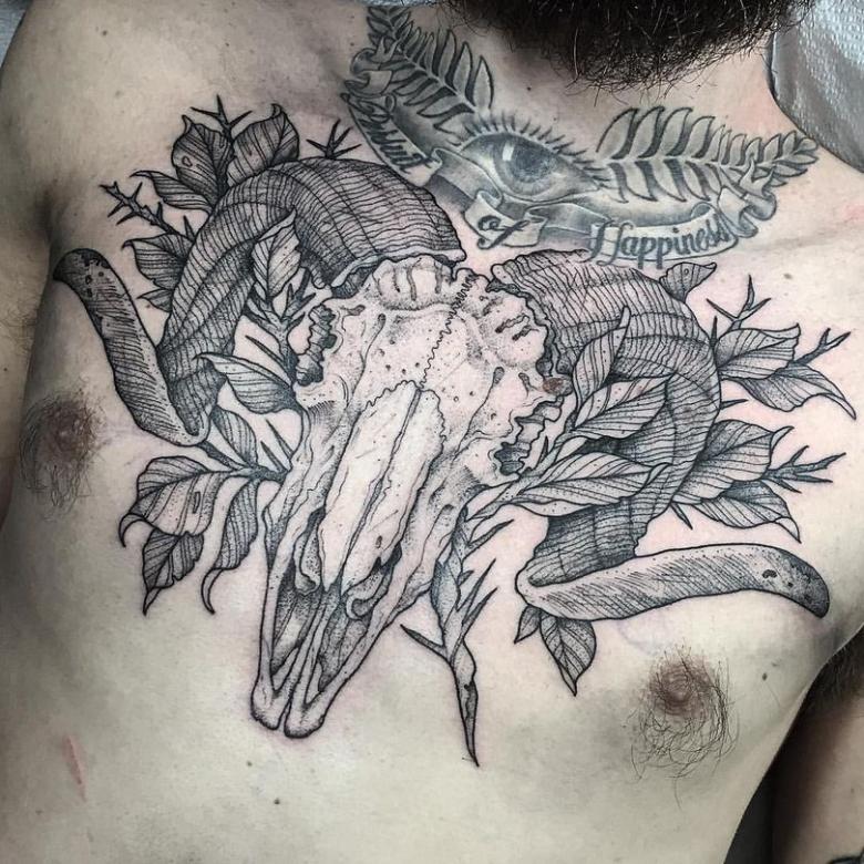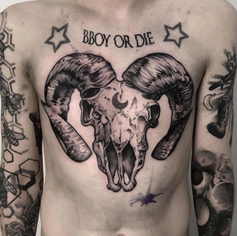 Tatouage du bélier - croquis et signification, symbolisme du tatouage (y compris le tatouage du crâne de bélier), où le placer, photos impressionnantes