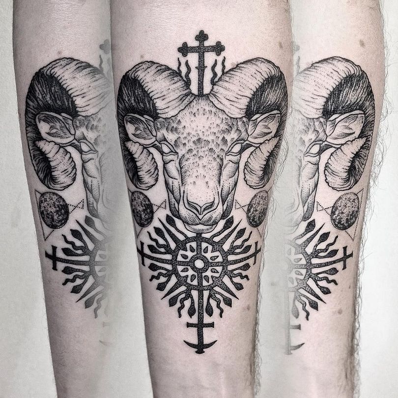 Le bélier est l'un des symboles les plus significatifs. L'animal est associé à la force, si on va plus loin dans l'histoire. Le bélier symbolise la masculinité. Les hommes ont tendance à choisir ce tatouage et à le porter fièrement. La plupart des jeunes hommes têtus et confiants portent l'image d'un bélier. Ils sont habitués à atteindre des objectifs, à réaliser des plans. Certains sont convaincus que le tatouage du bélier est un tatouage strictement masculin. Certains sont d'avis que le tatouage du bélier est strictement réservé aux hommes. L'ordre est important pour eux. On peut compter sur ces personnes, elles apprécient les amitiés et chérissent les relations précieuses. Le mouton symbolise la force d'esprit, la fiabilité, la constance.