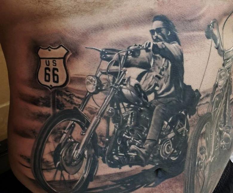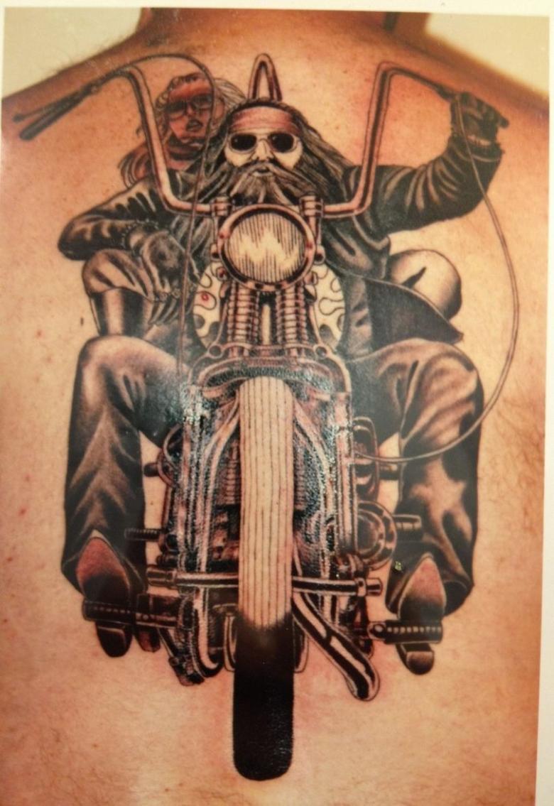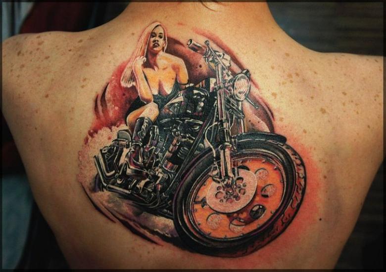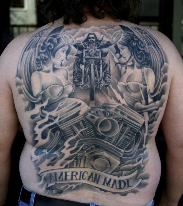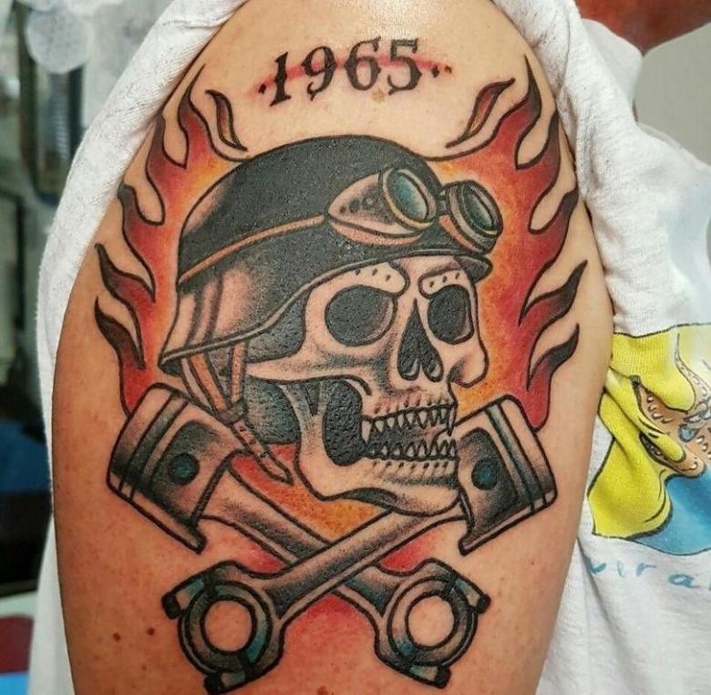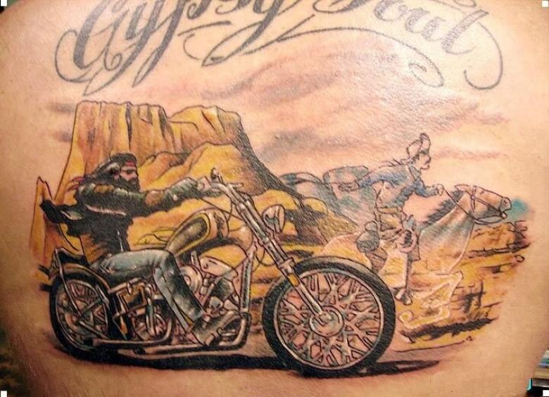 Il est nécessaire, c'était une âme libre et le cœur travaillant à l'unisson avec un moteur. L'image corporelle aura alors une signification particulière et fera la fierté de son propriétaire. Les tatouages traditionnels de motards sont réalisés dans un style, un lettrage et un réalisme à l'ancienne.