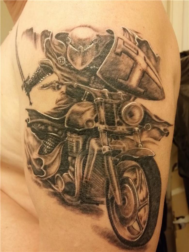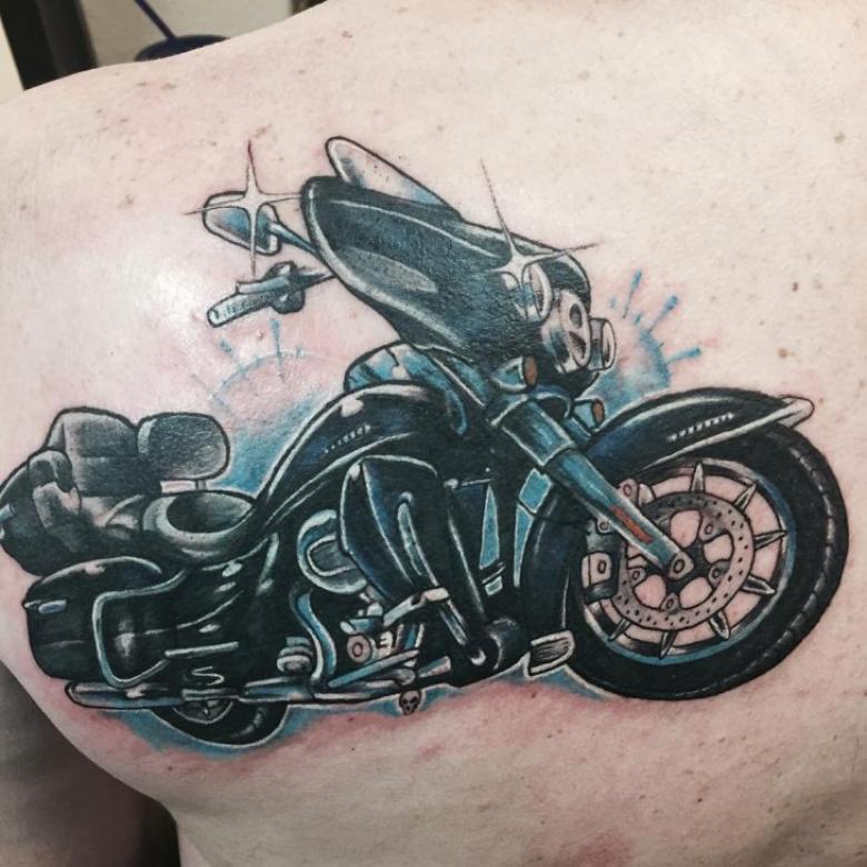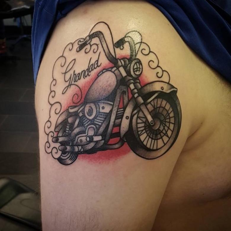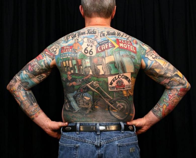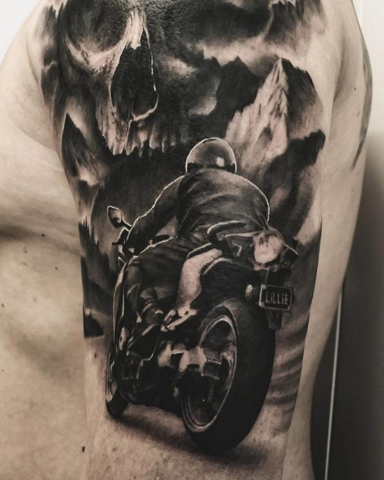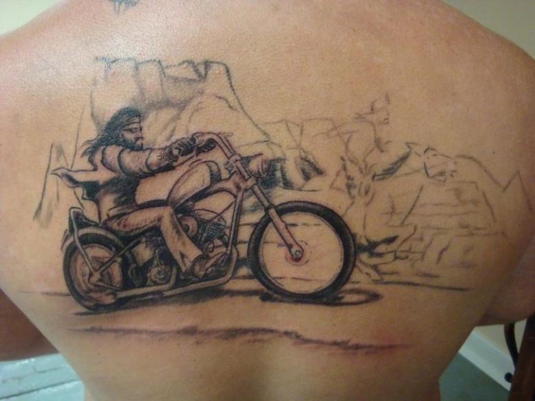 Il est nécessaire, c'était une âme libre et le cœur travaillant à l'unisson avec un moteur. L'image corporelle aura alors une signification particulière et fera la fierté de son propriétaire. Les tatouages traditionnels de motards sont réalisés dans un style, un lettrage et un réalisme à l'ancienne.