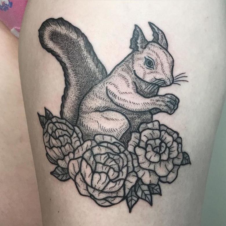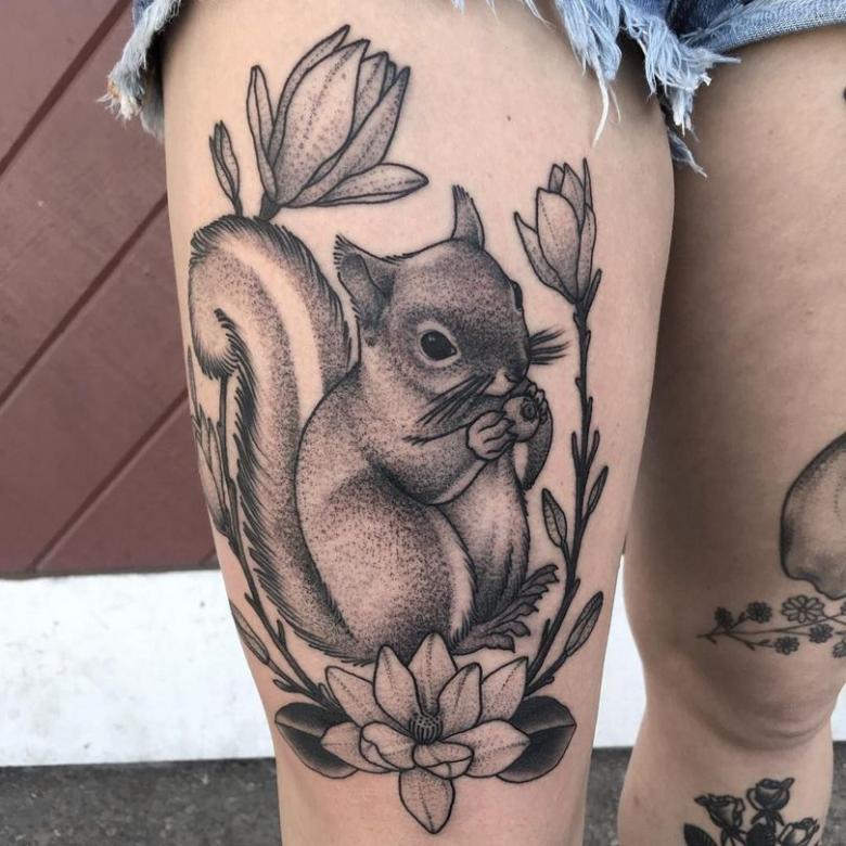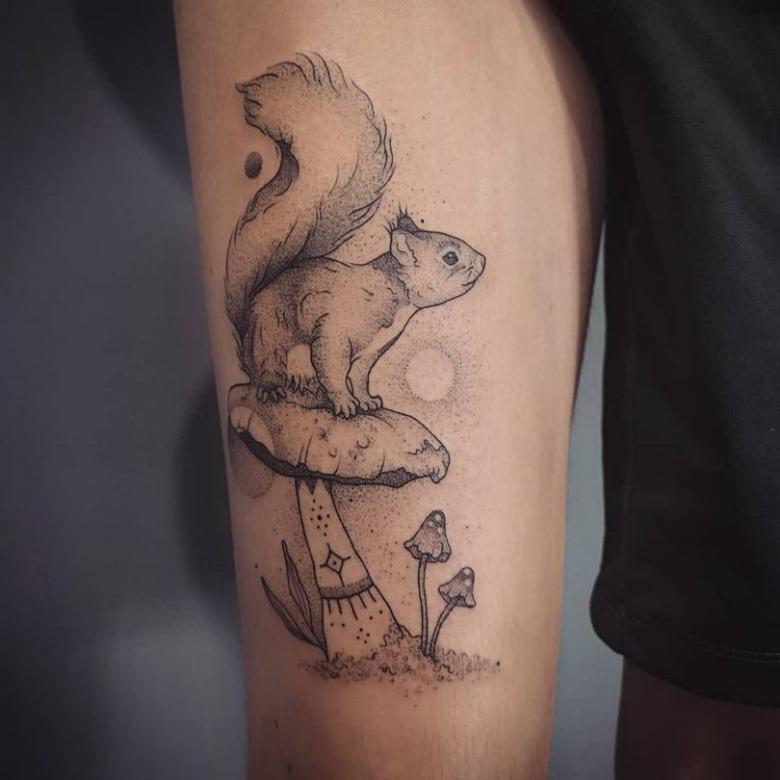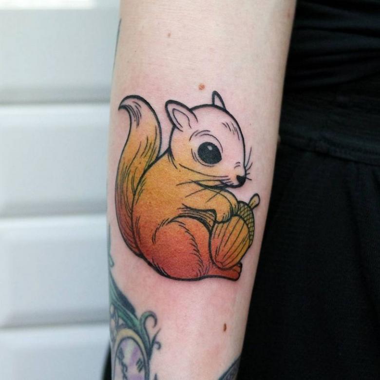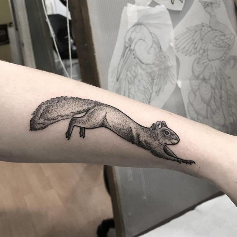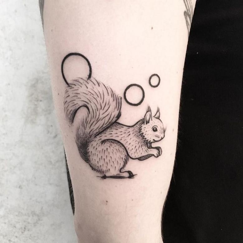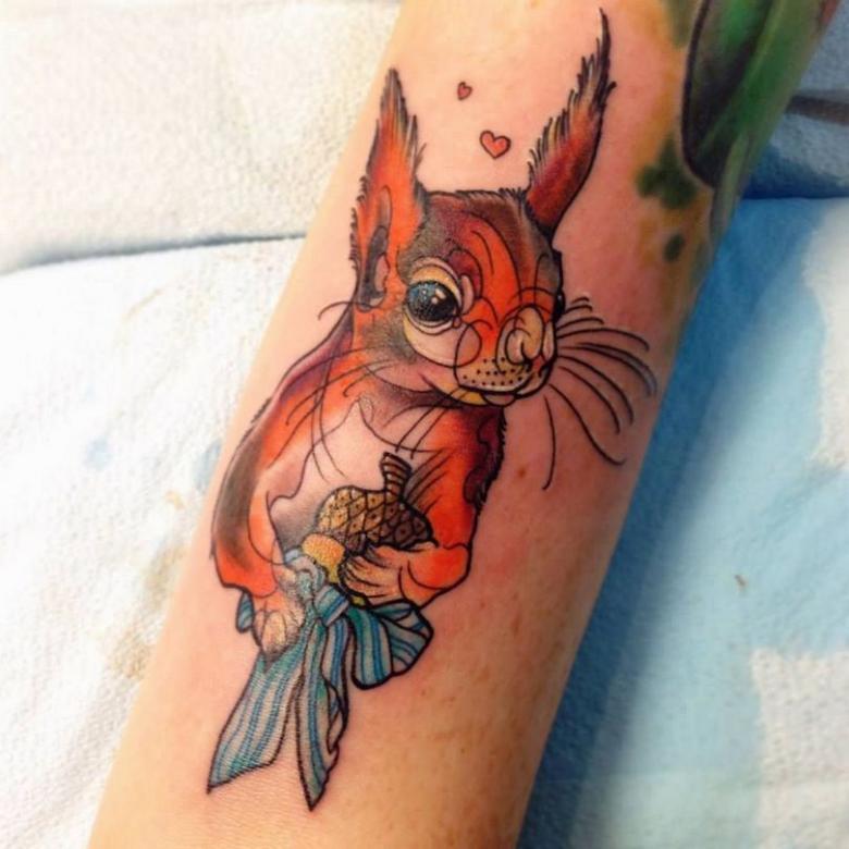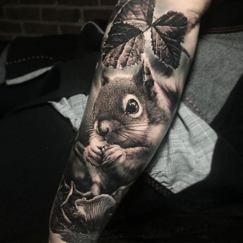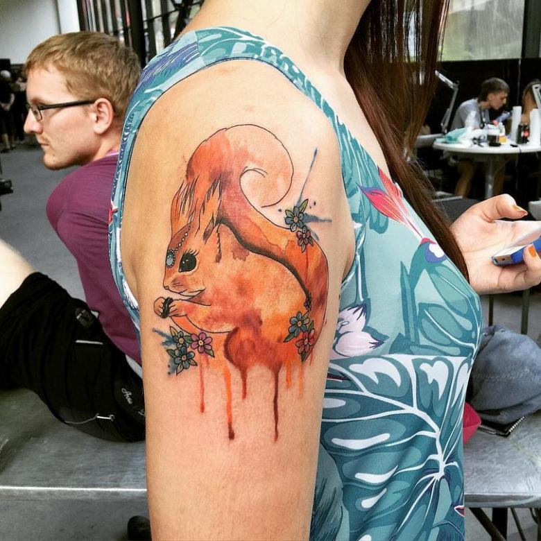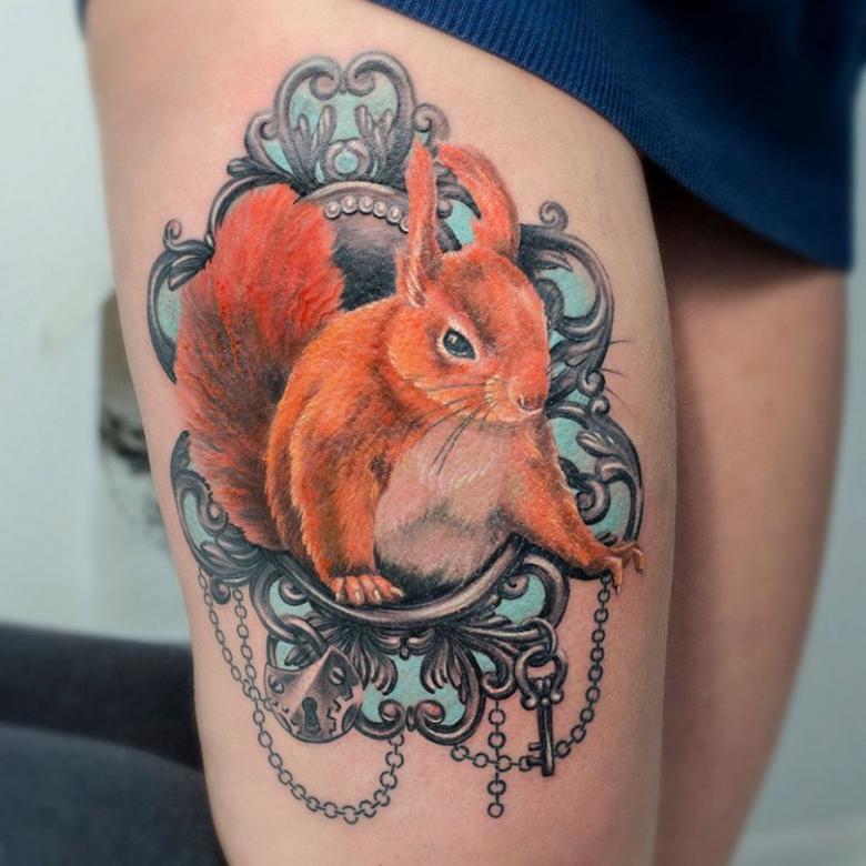 Tatouage d'un écureuil - description complète, motifs de tatouage pour les filles et les hommes, où les appliquer, photos amusantes.