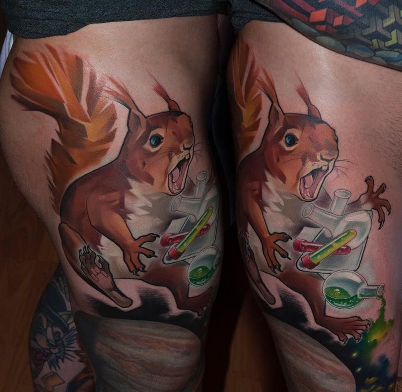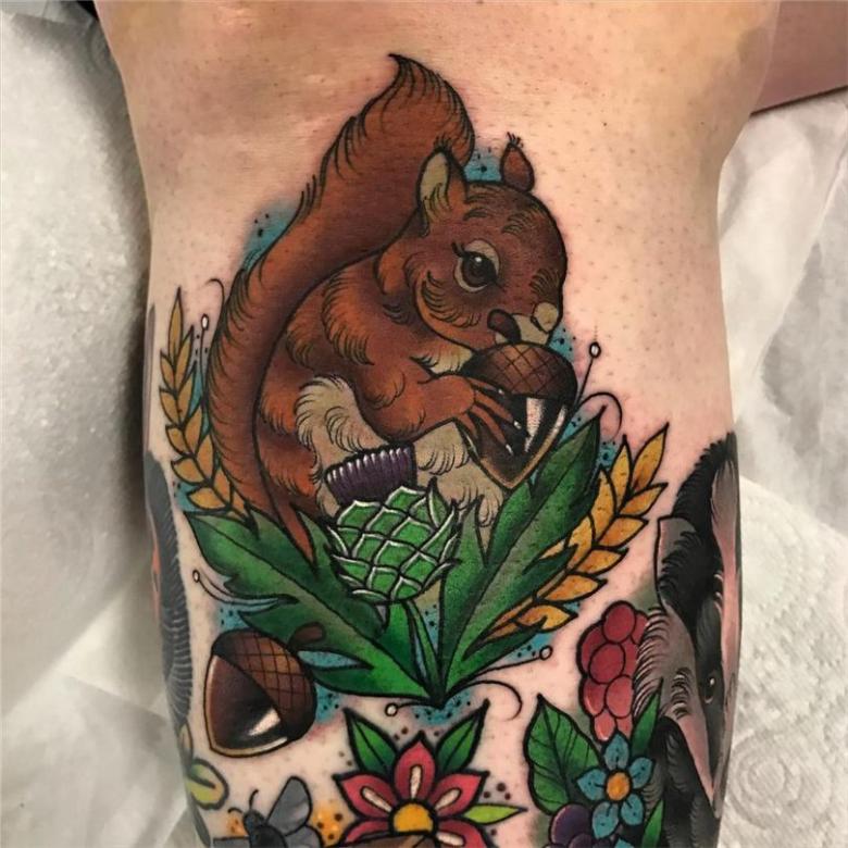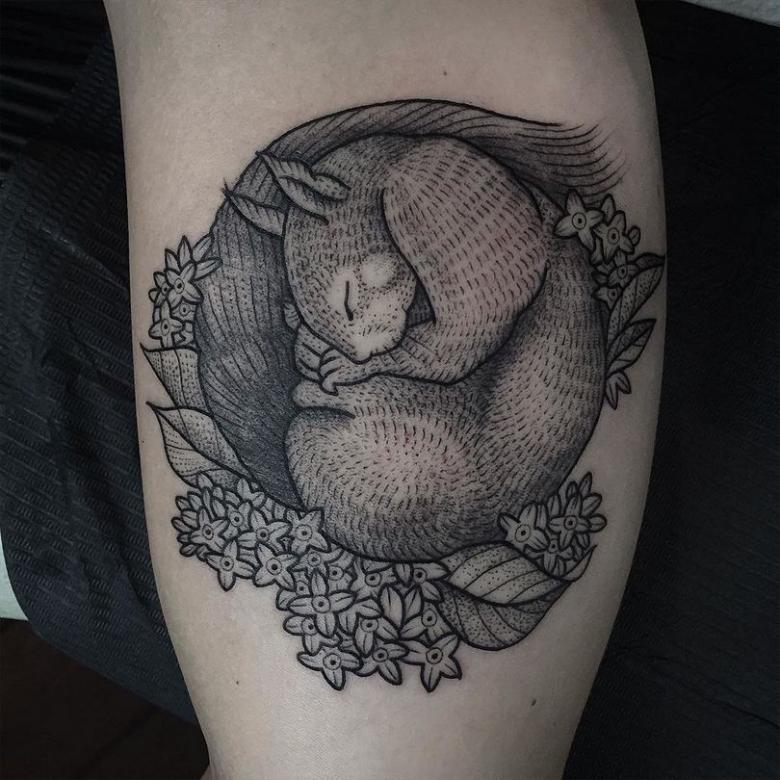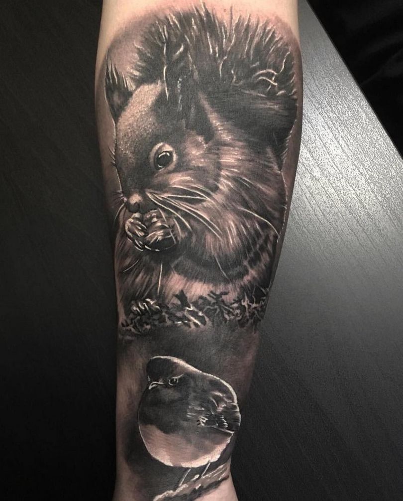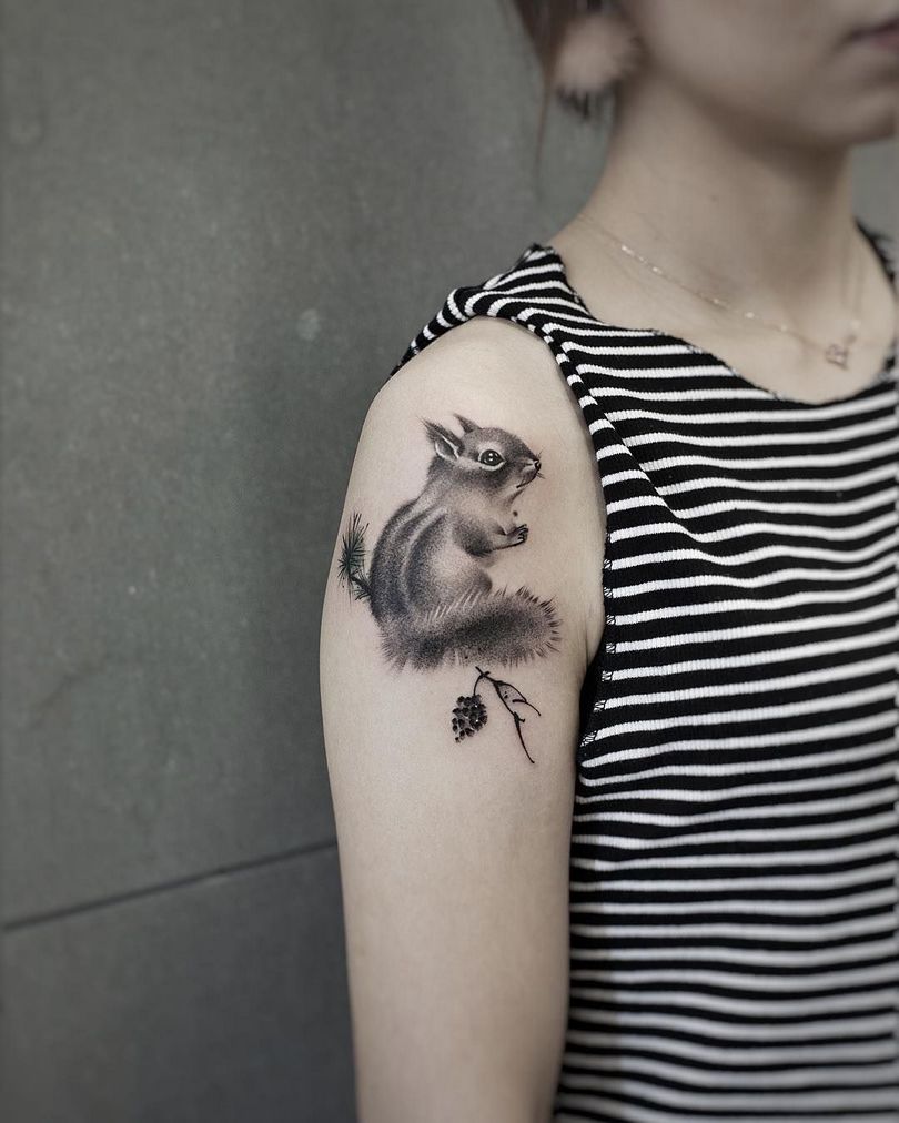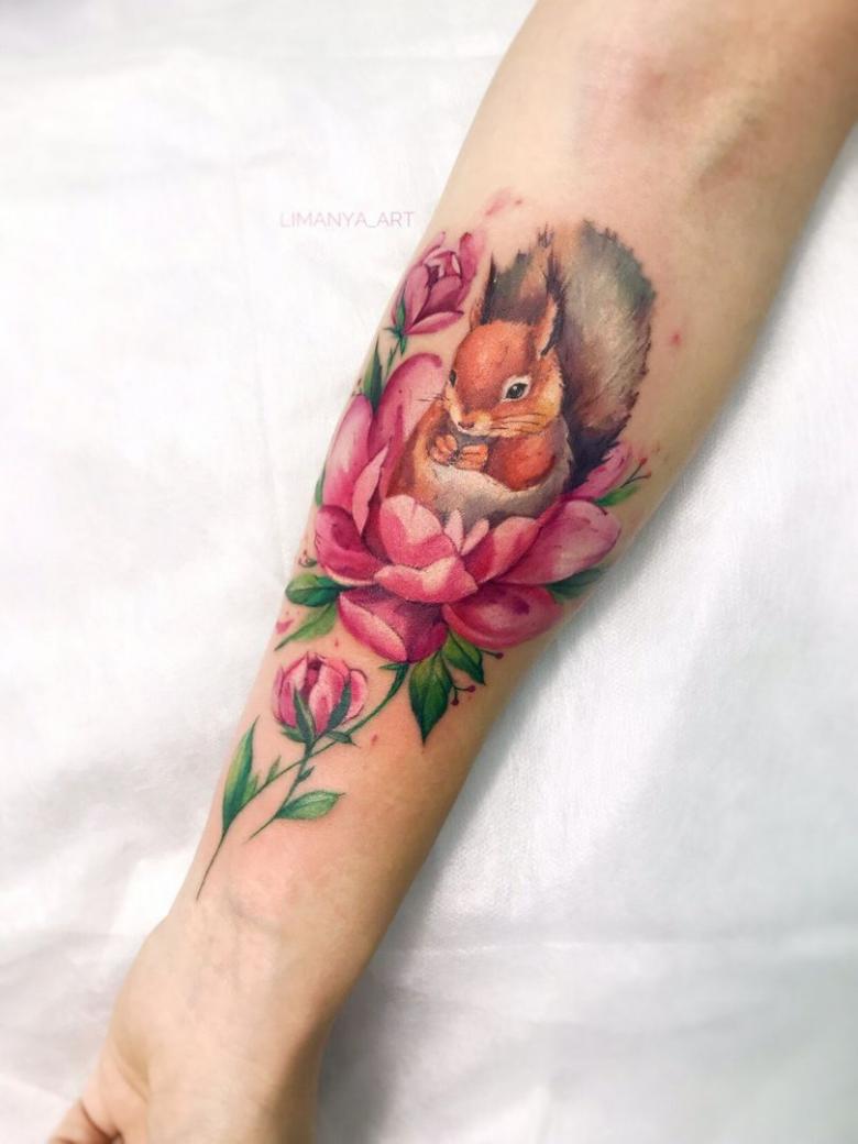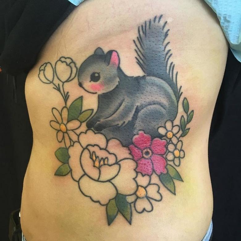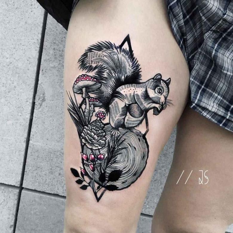 Tatouage d'un écureuil - description complète, motifs de tatouage pour les filles et les hommes, où les appliquer, photos amusantes.