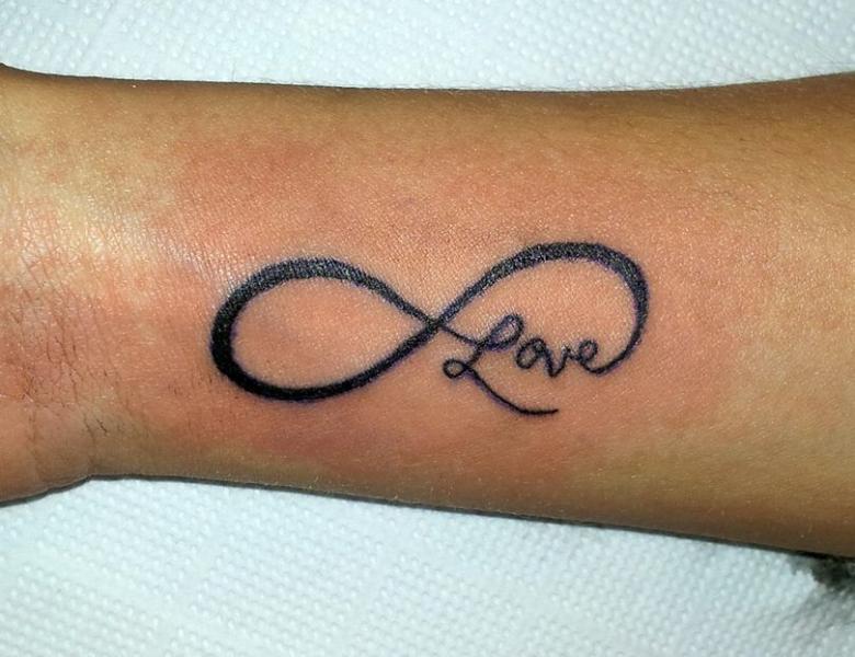 - L'infini avec une inscription. L'un des tatouages les plus populaires, qui utilise le plus souvent le mot "amour". Le propriétaire d'un tel tatouage peut être décrit comme un romantique désespéré qui se laisse guider par ses sentiments plutôt que par la raison.