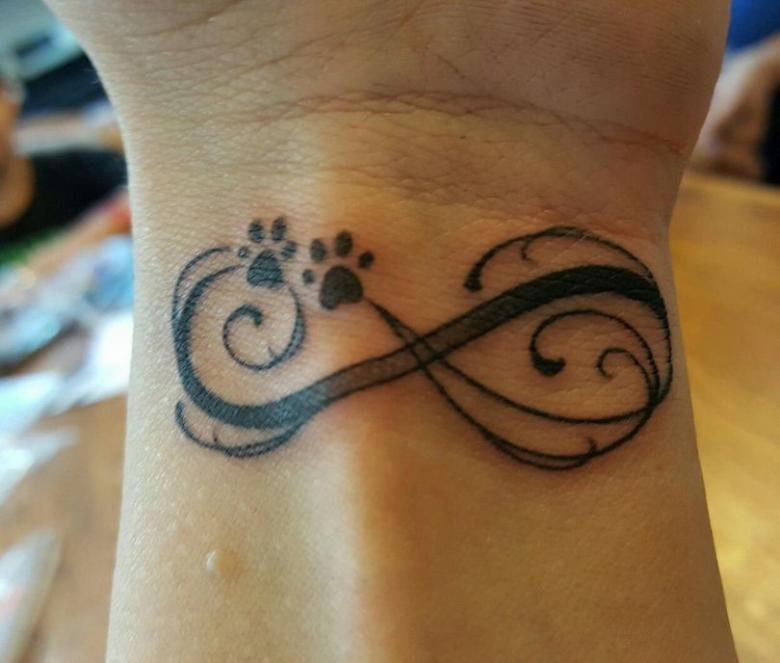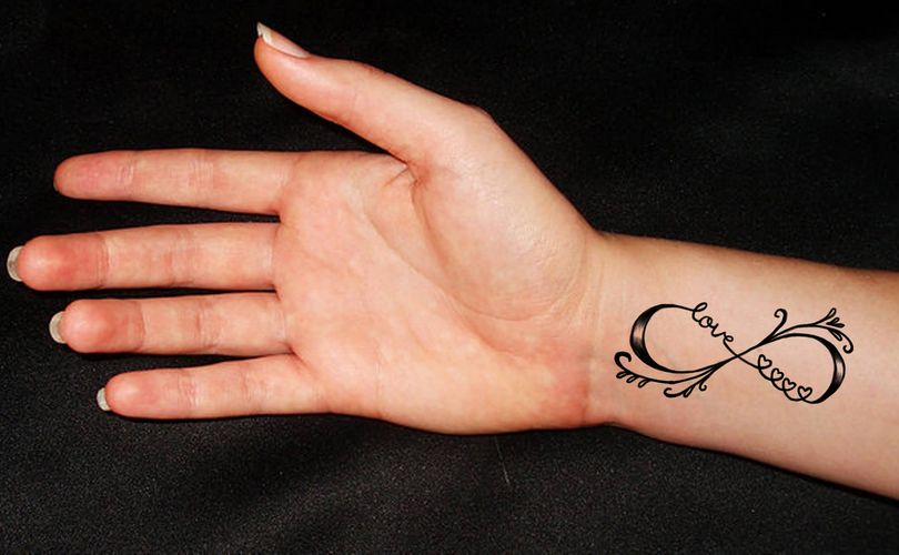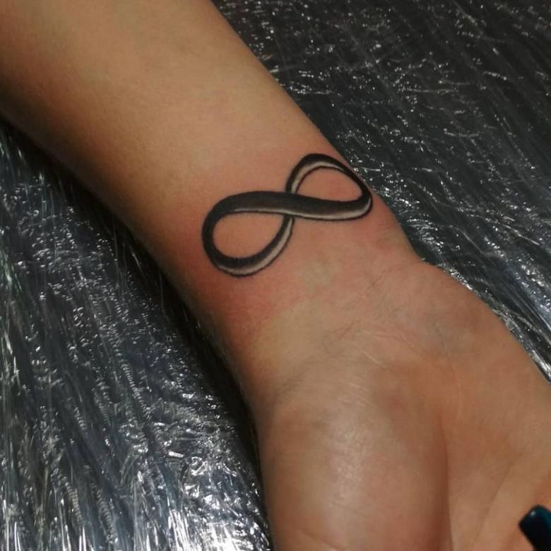 Tatouage infini - la signification des tatouages infini sur le poignet (main) pour les filles, options croquis (avec un stylo, avec les noms, doubles), travaux photo
